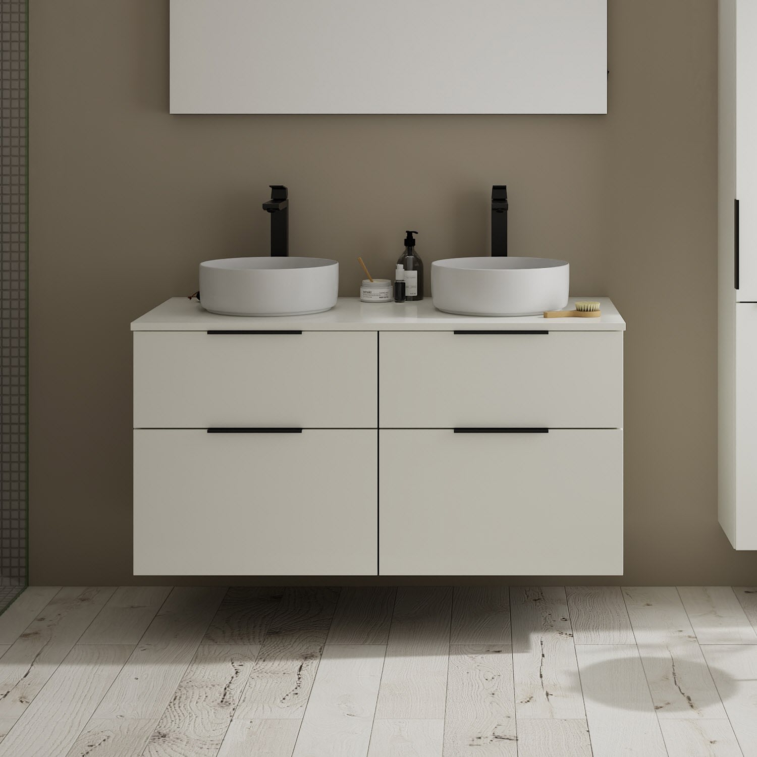 burgbad Eqio Waschtischkombination mit Keramik-Aufsatzwaschtisch 120 cm, links und rechts, mit Griff G0200