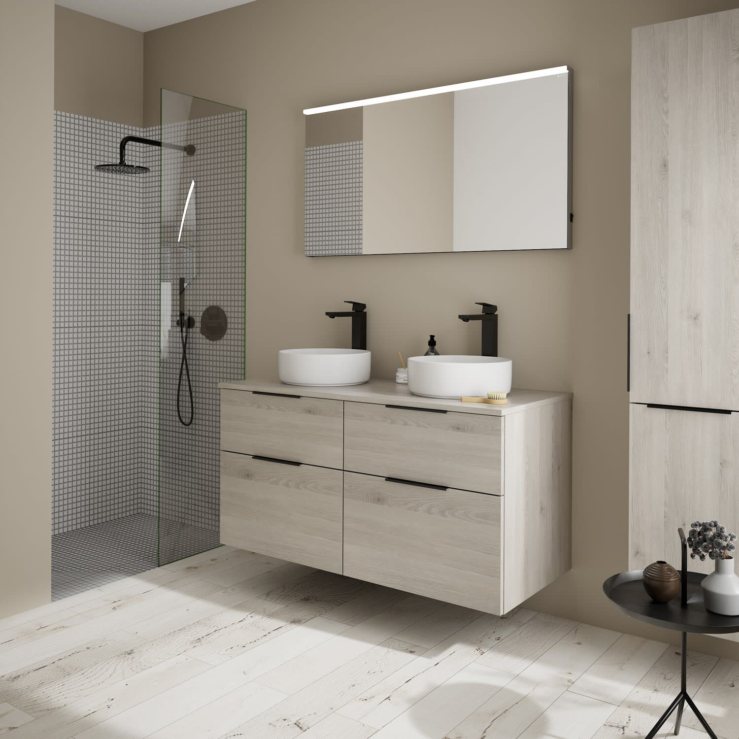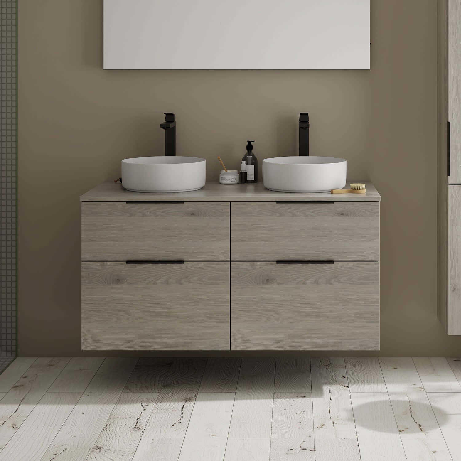 burgbad Eqio Waschtischkombination mit Keramik-Aufsatzwaschtisch 120 cm, links und rechts, mit Griff G0200