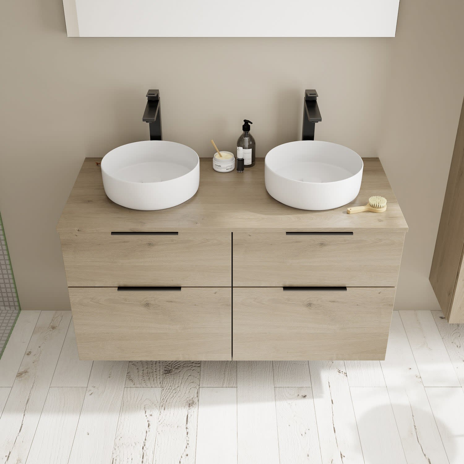 burgbad Eqio Waschtischkombination mit Keramik-Aufsatzwaschtisch 120 cm, links und rechts, mit Griff G0200