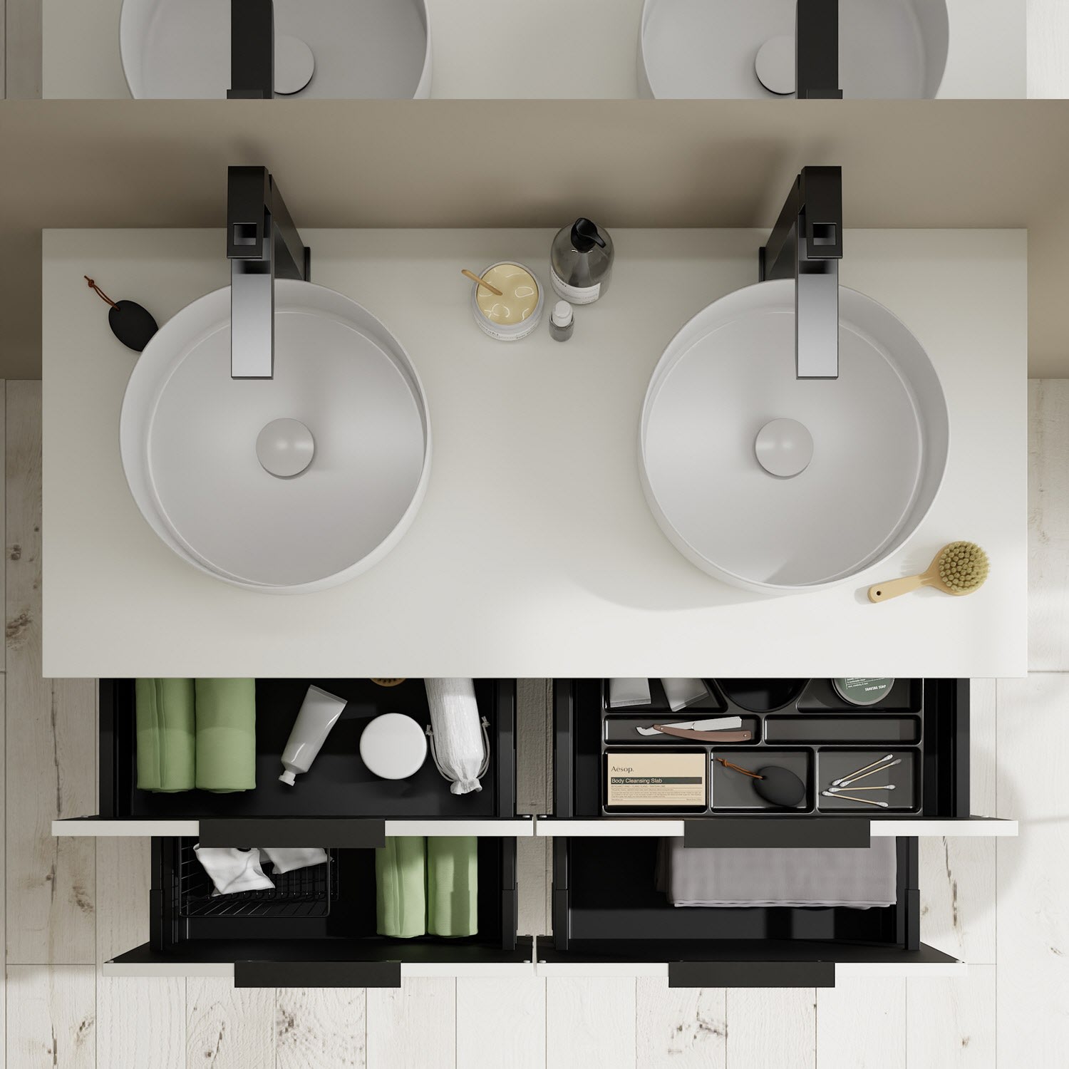 burgbad Eqio Waschtischkombination mit Keramik-Aufsatzwaschtisch 120 cm, links und rechts, mit Griff G0200