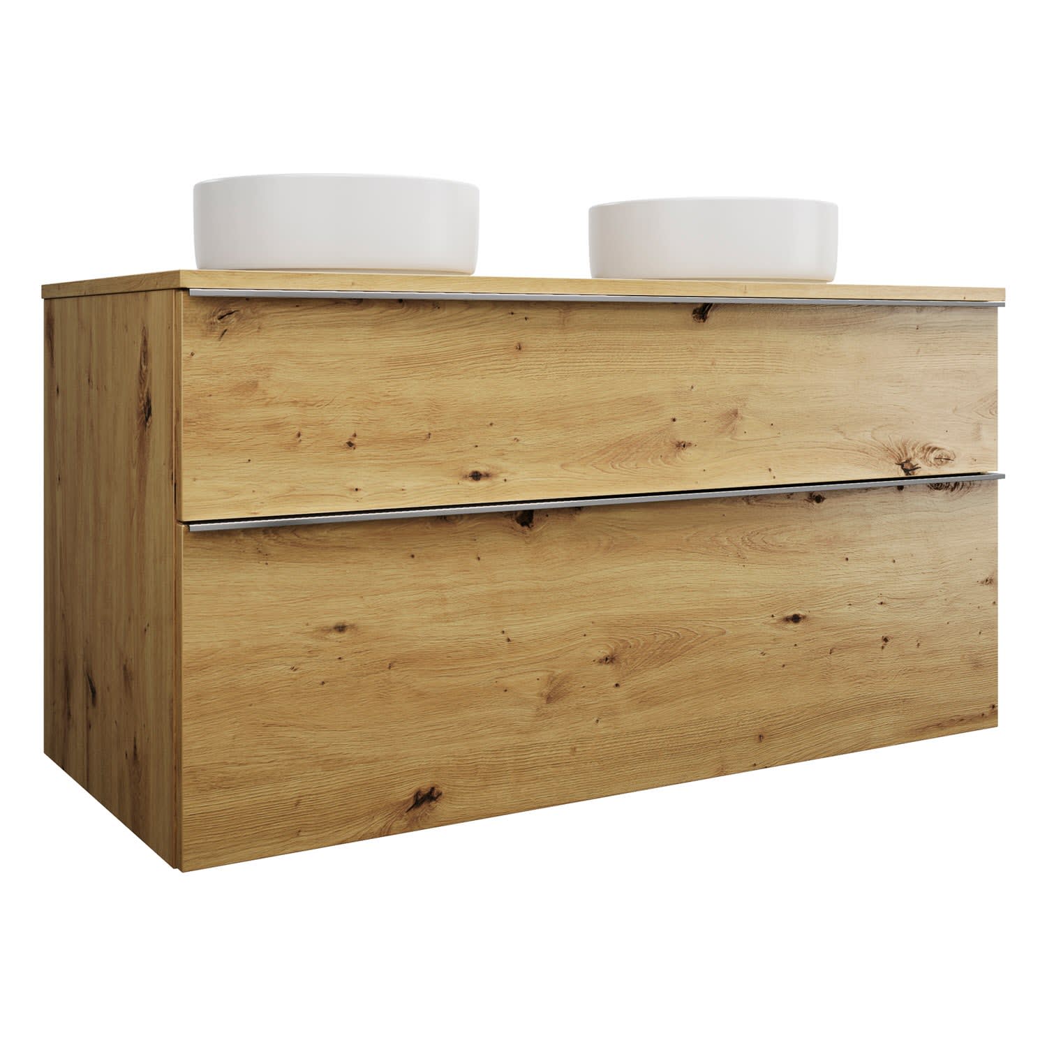 burgbad Eqio Waschtischkombination mit Keramik-Aufsatzwaschtisch 120 cm, links und rechts, mit Griffleiste G0251