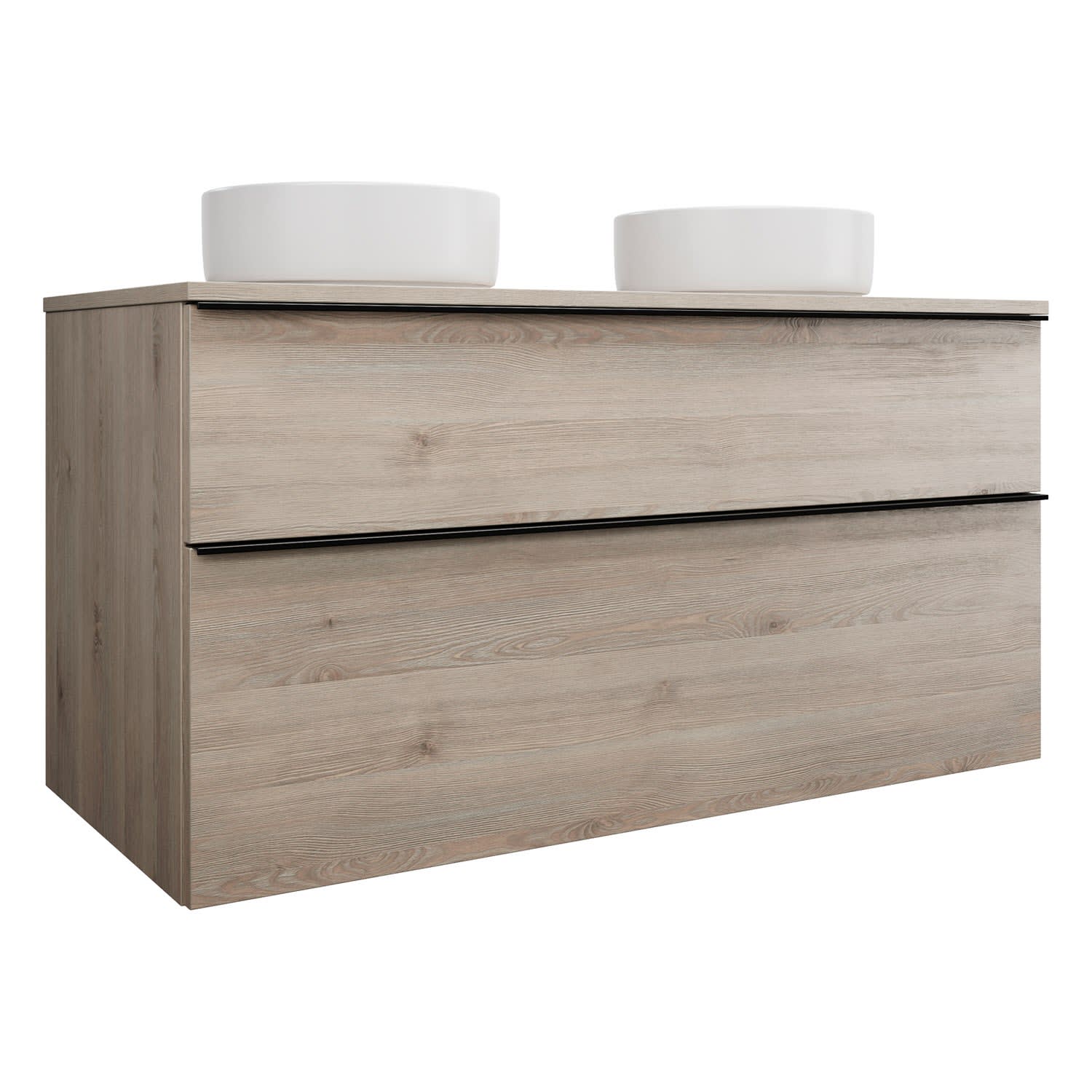 burgbad Eqio Waschtischkombination mit Keramik-Aufsatzwaschtisch 120 cm, links und rechts, mit Griffleiste G0252