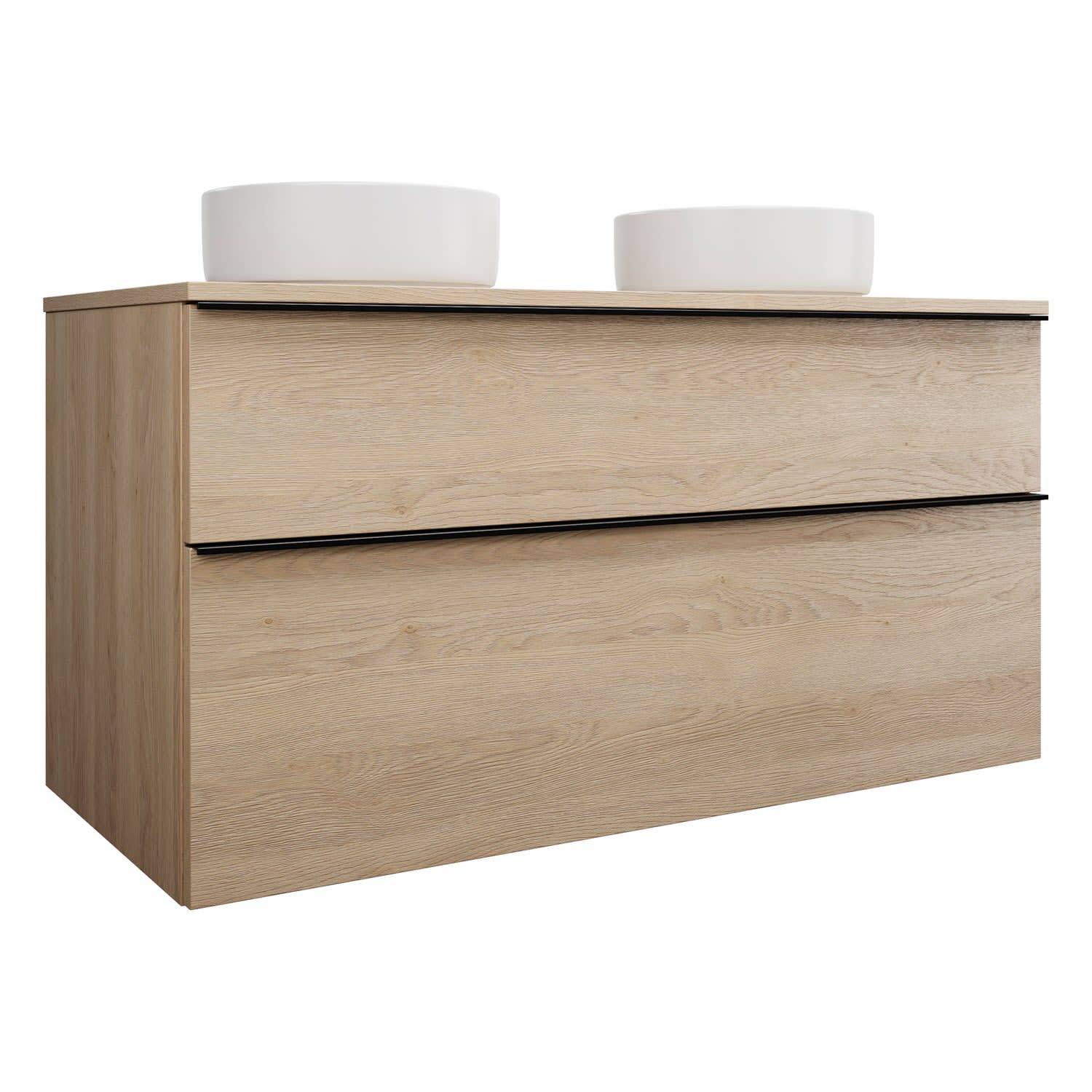 burgbad Eqio Waschtischkombination mit Keramik-Aufsatzwaschtisch 120 cm, links und rechts, mit Griffleiste G0252