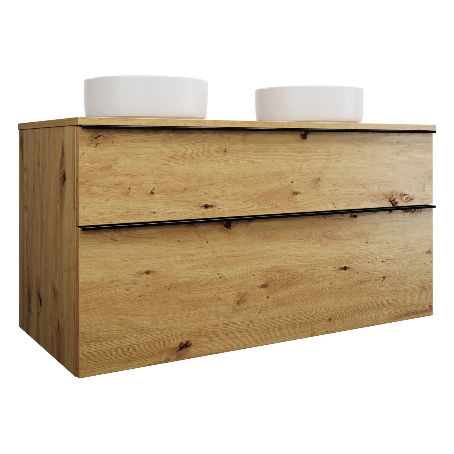 burgbad Eqio Waschtischkombination mit Keramik-Aufsatzwaschtisch 120 cm, links und rechts, mit Griffleiste G0252
