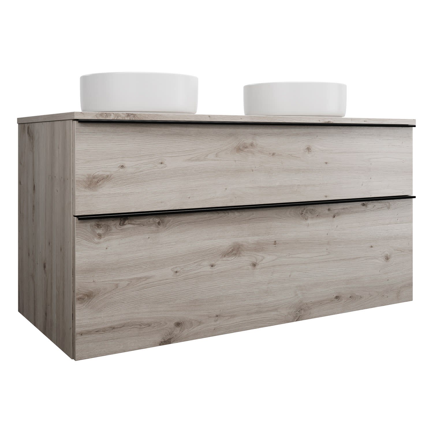 burgbad Eqio Waschtischkombination mit Keramik-Aufsatzwaschtisch 120 cm, links und rechts, mit Griffleiste G0252