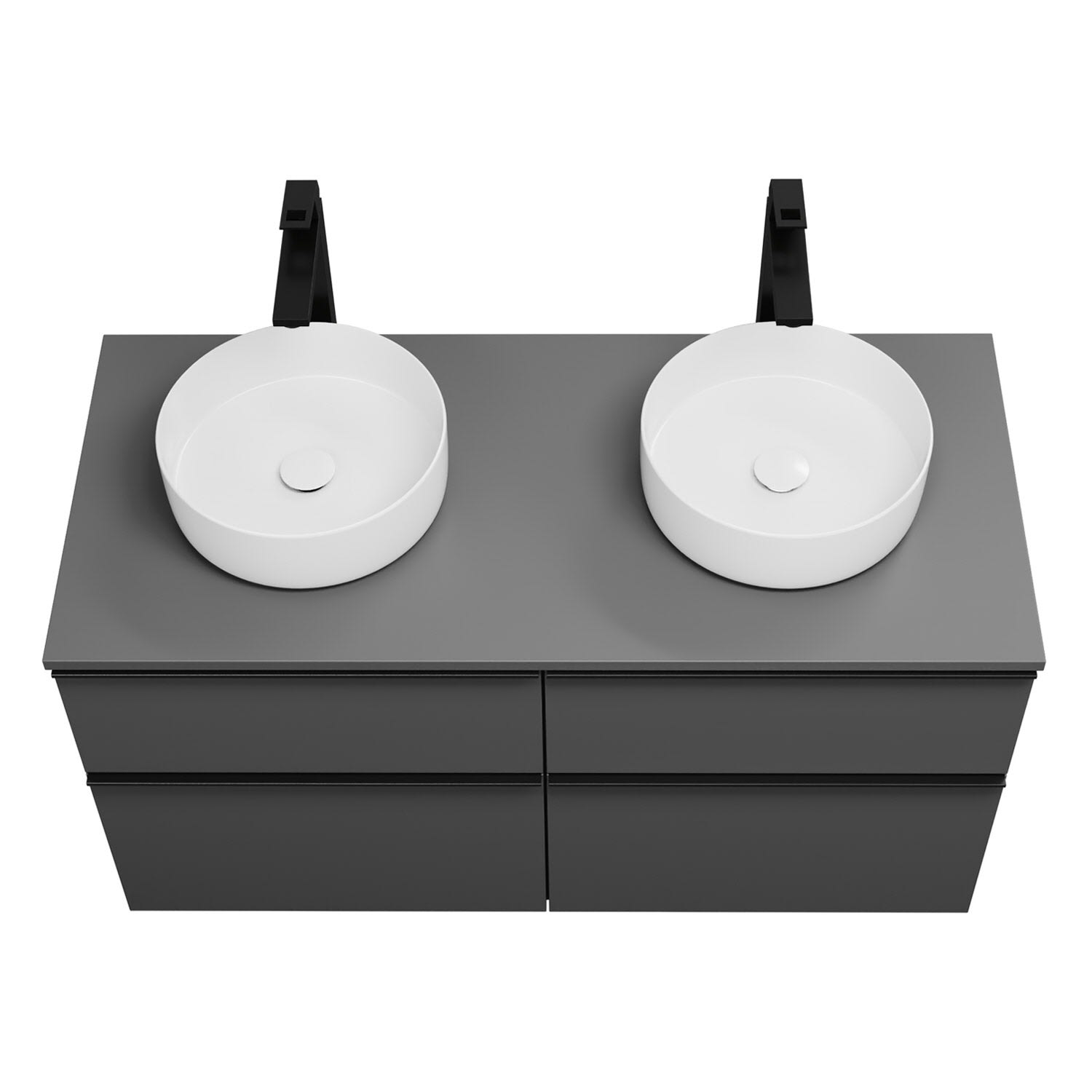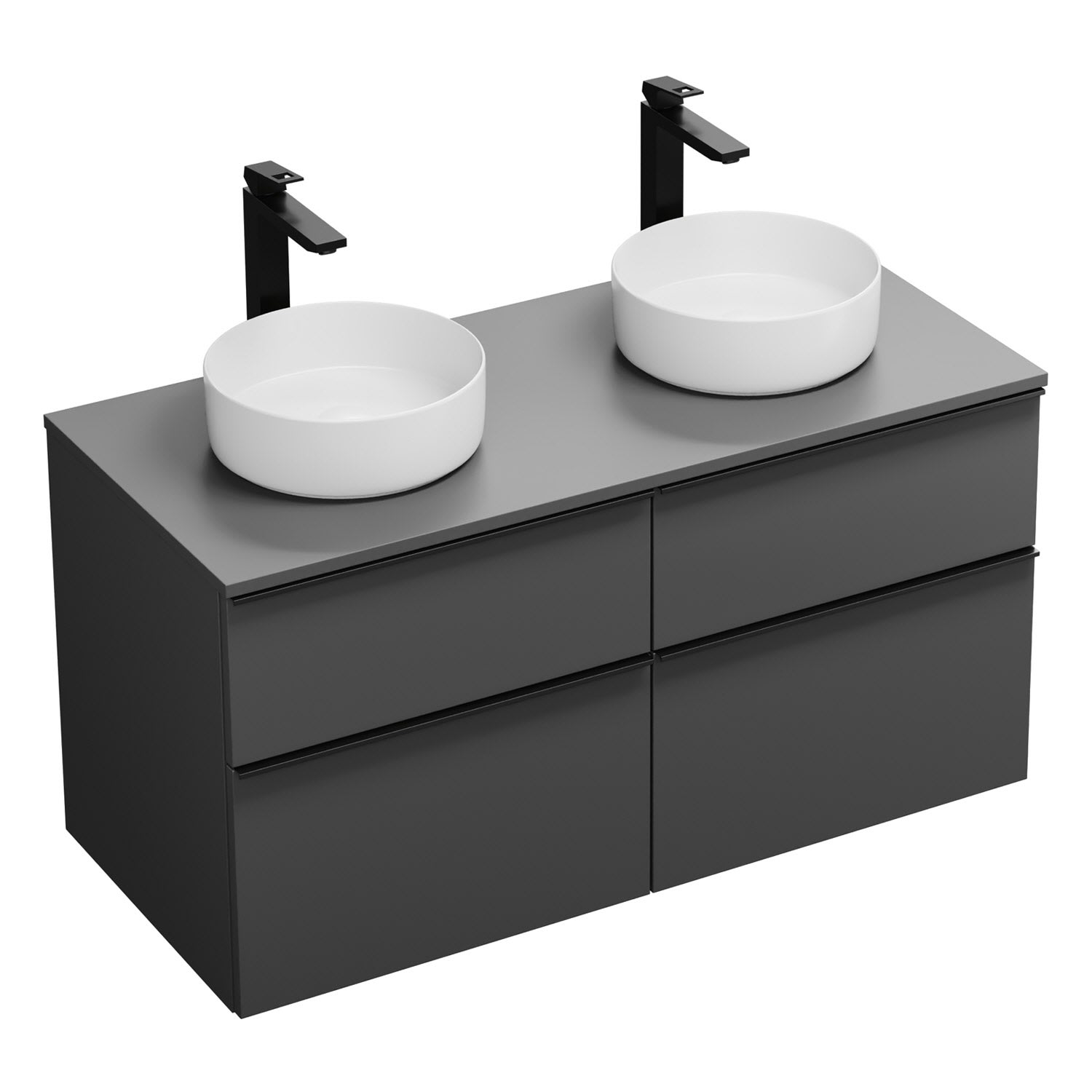 burgbad Eqio Waschtischkombination mit Keramik-Aufsatzwaschtisch 120 cm, links und rechts, mit Griffleiste G0252