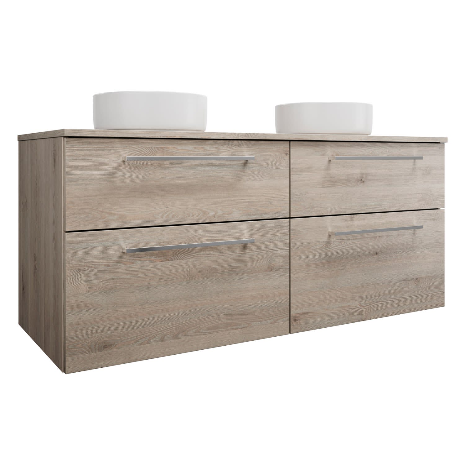 burgbad Eqio Waschtischkombination mit Keramik-Aufsatzwaschtisch 140 cm, mit Stangengriff P95