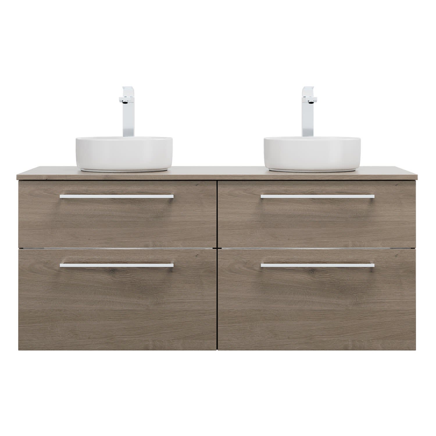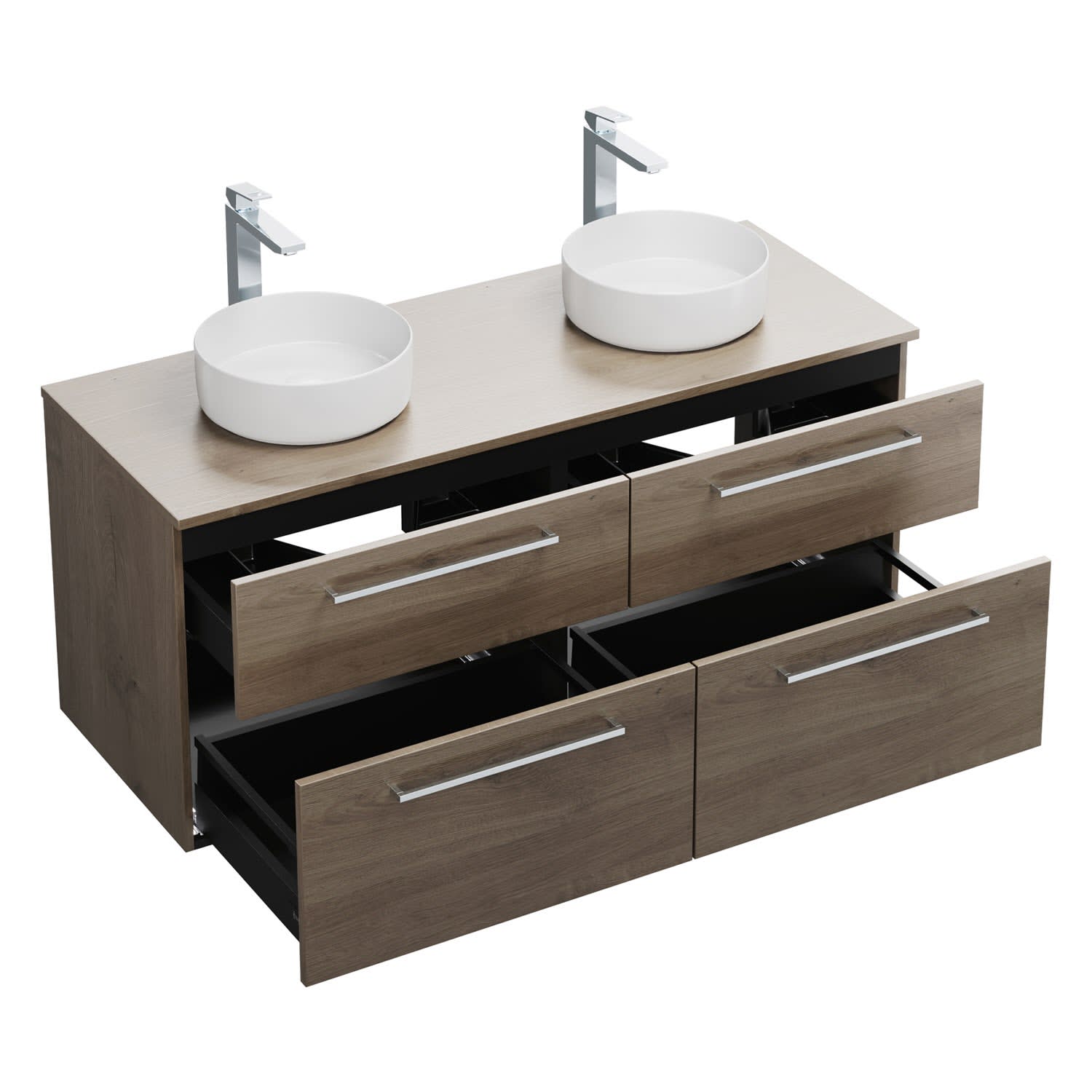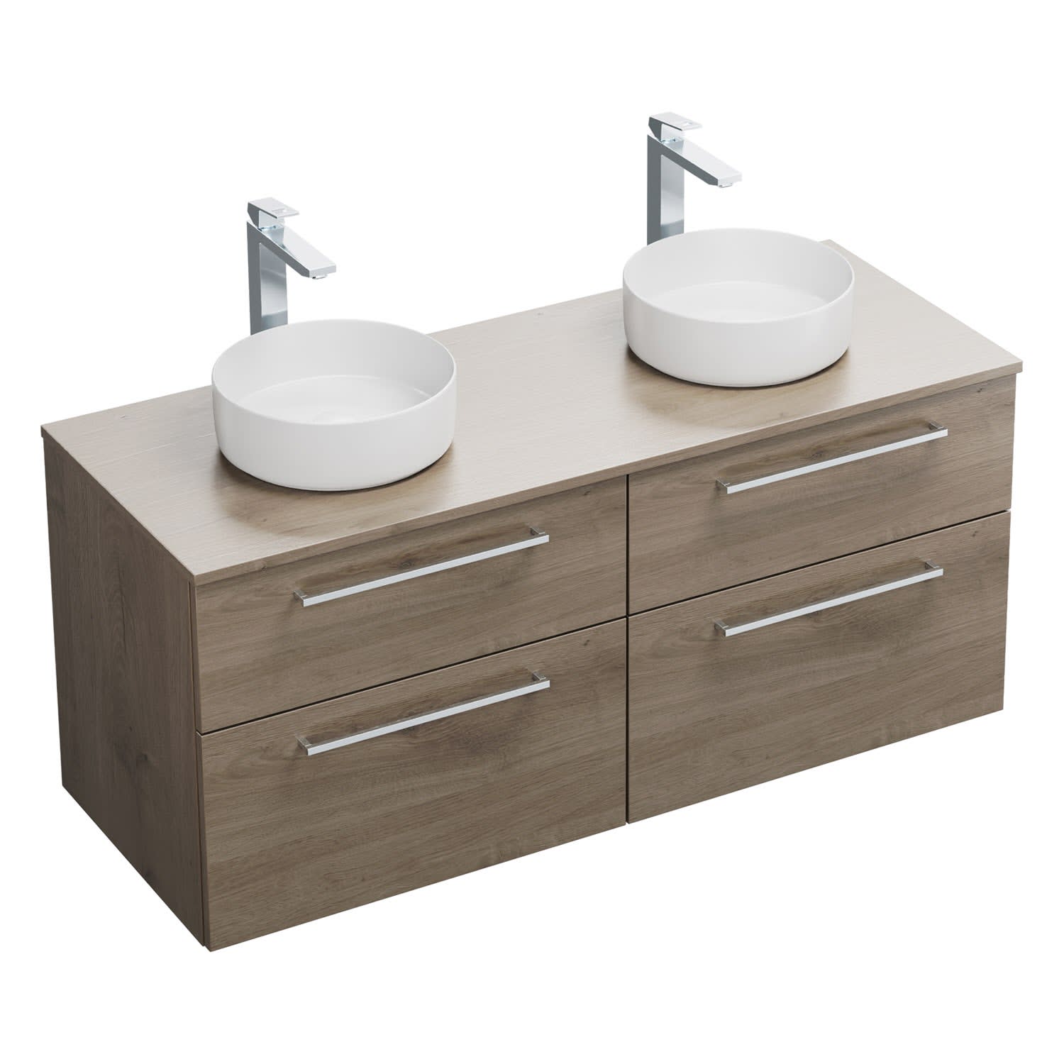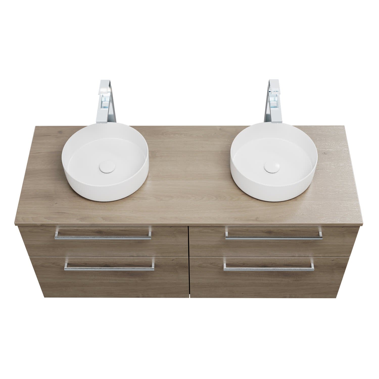 burgbad Eqio Waschtischkombination mit Keramik-Aufsatzwaschtisch 140 cm, links und rechts, mit Stangengriff P95