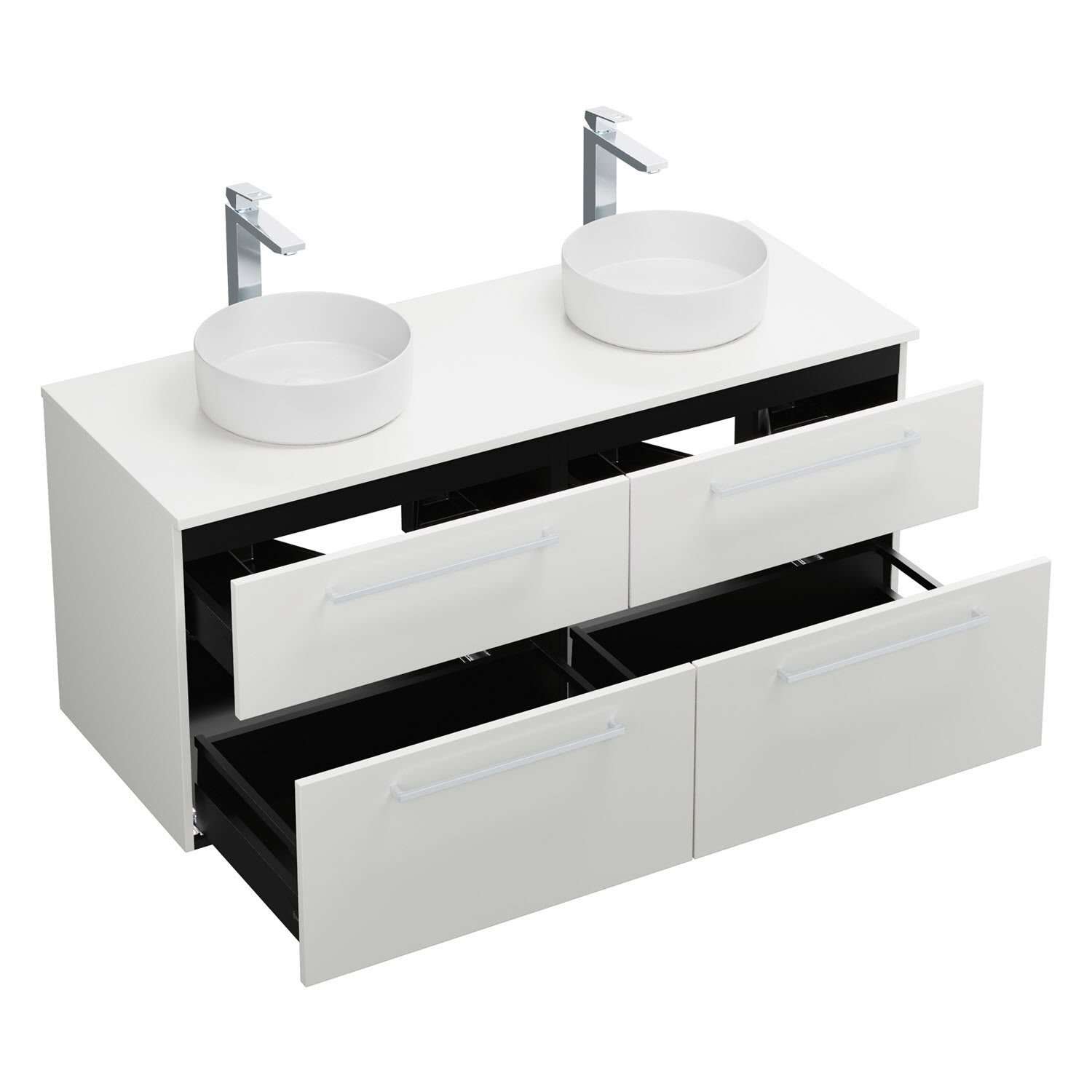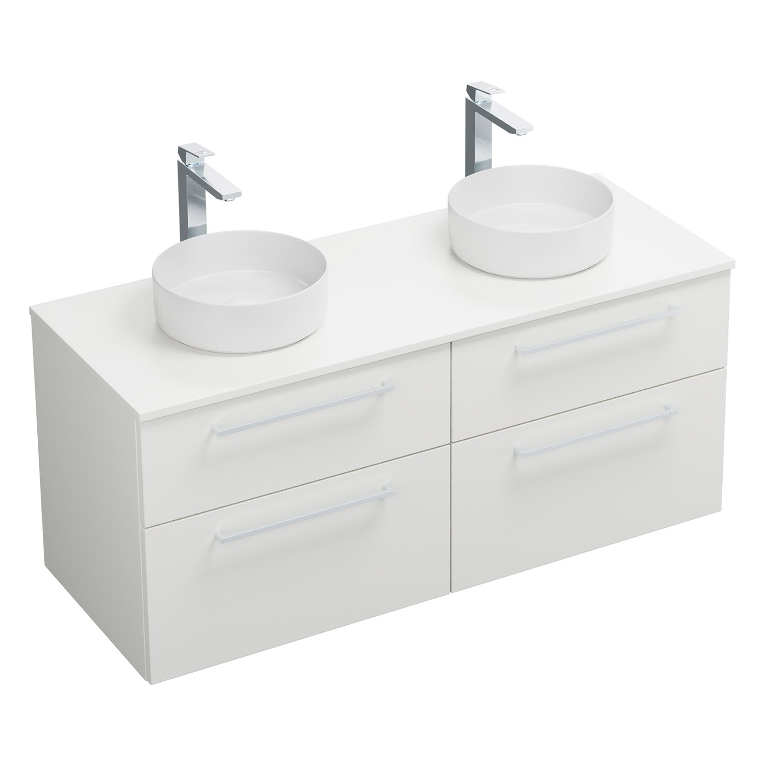 burgbad Eqio Waschtischkombination mit Keramik-Aufsatzwaschtisch 140 cm, links und rechts, mit Stangengriff P95