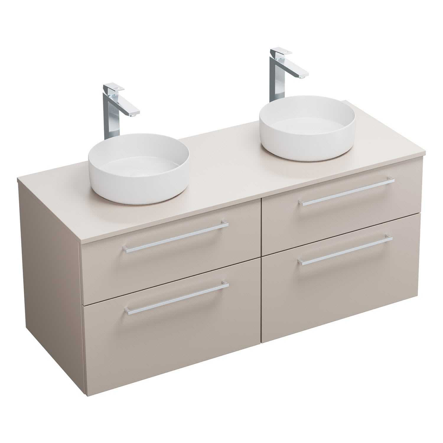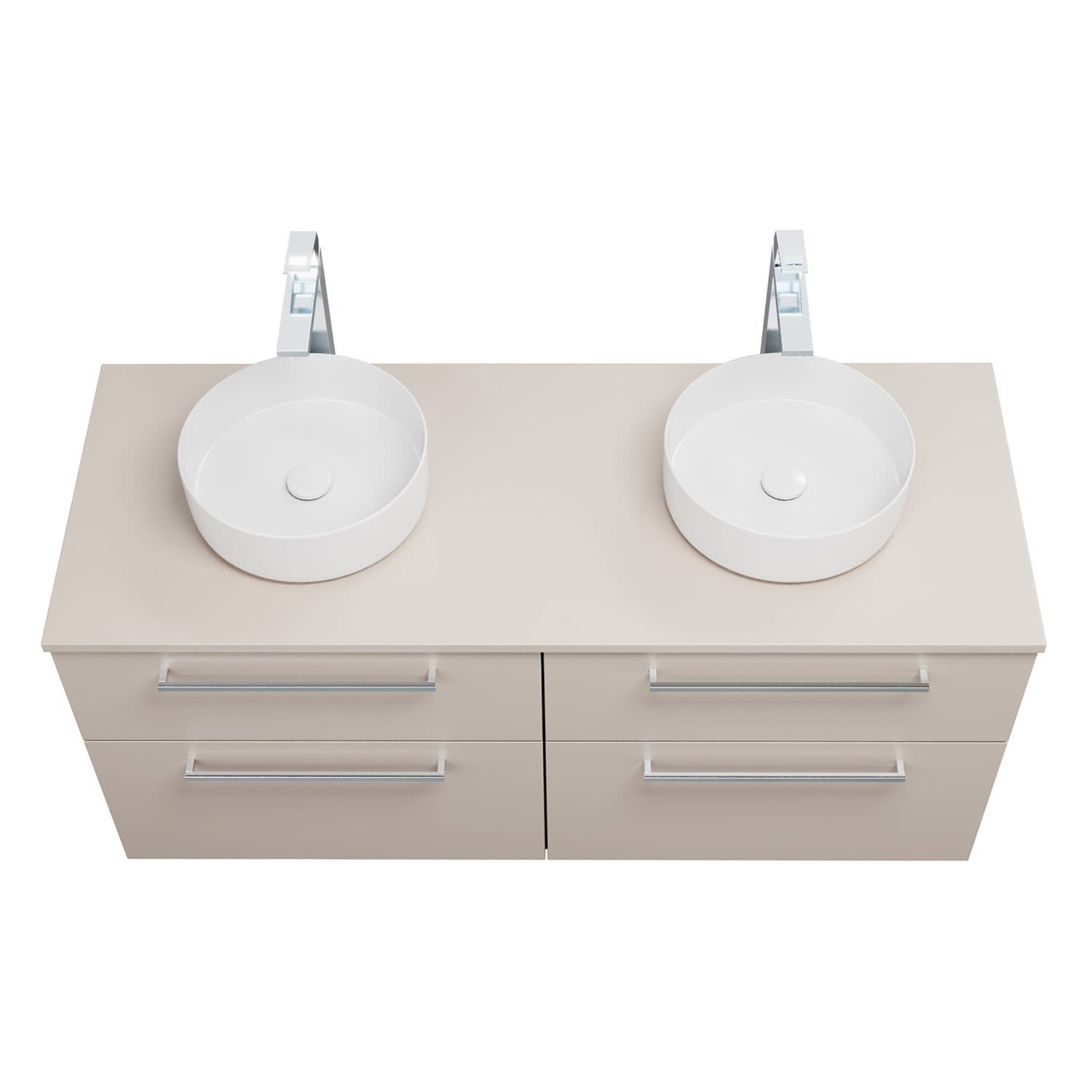 burgbad Eqio Waschtischkombination mit Keramik-Aufsatzwaschtisch 140 cm, links und rechts, mit Stangengriff P95