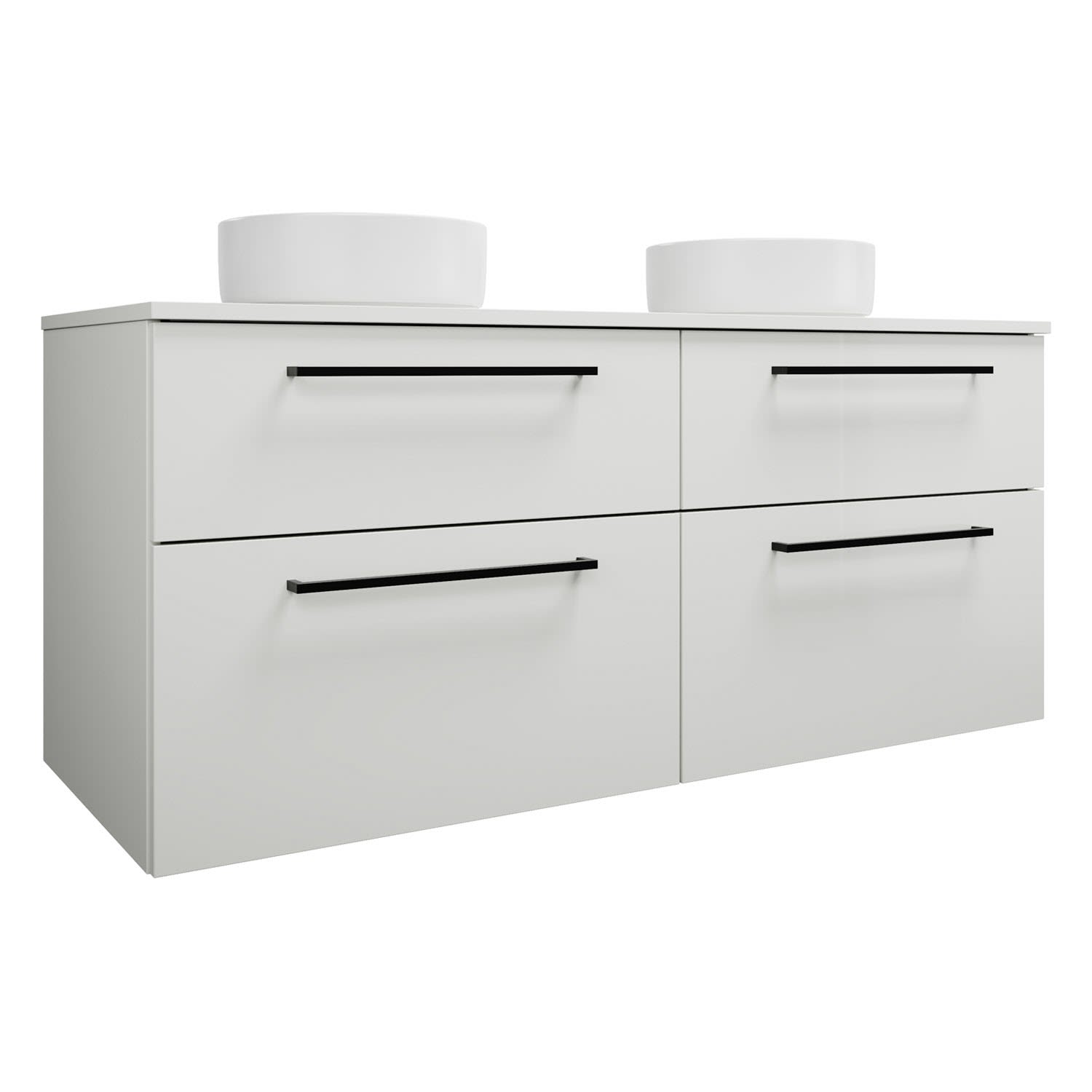 burgbad Eqio Waschtischkombination mit Keramik-Aufsatzwaschtisch 140 cm, links und rechts, mit Stangengriff G0234