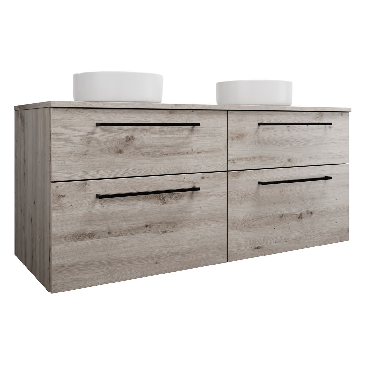burgbad Eqio Waschtischkombination mit Keramik-Aufsatzwaschtisch 140 cm, links und rechts, mit Stangengriff G0234