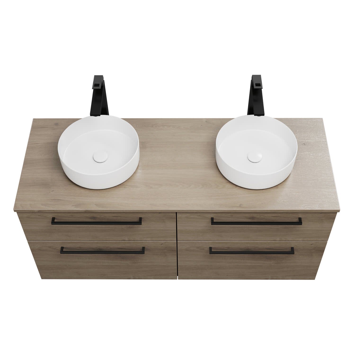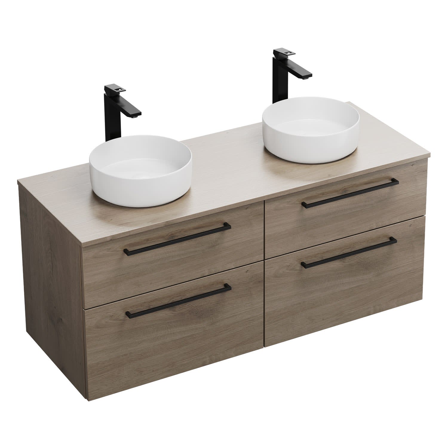 burgbad Eqio Waschtischkombination mit Keramik-Aufsatzwaschtisch 140 cm, links und rechts, mit Stangengriff G0234