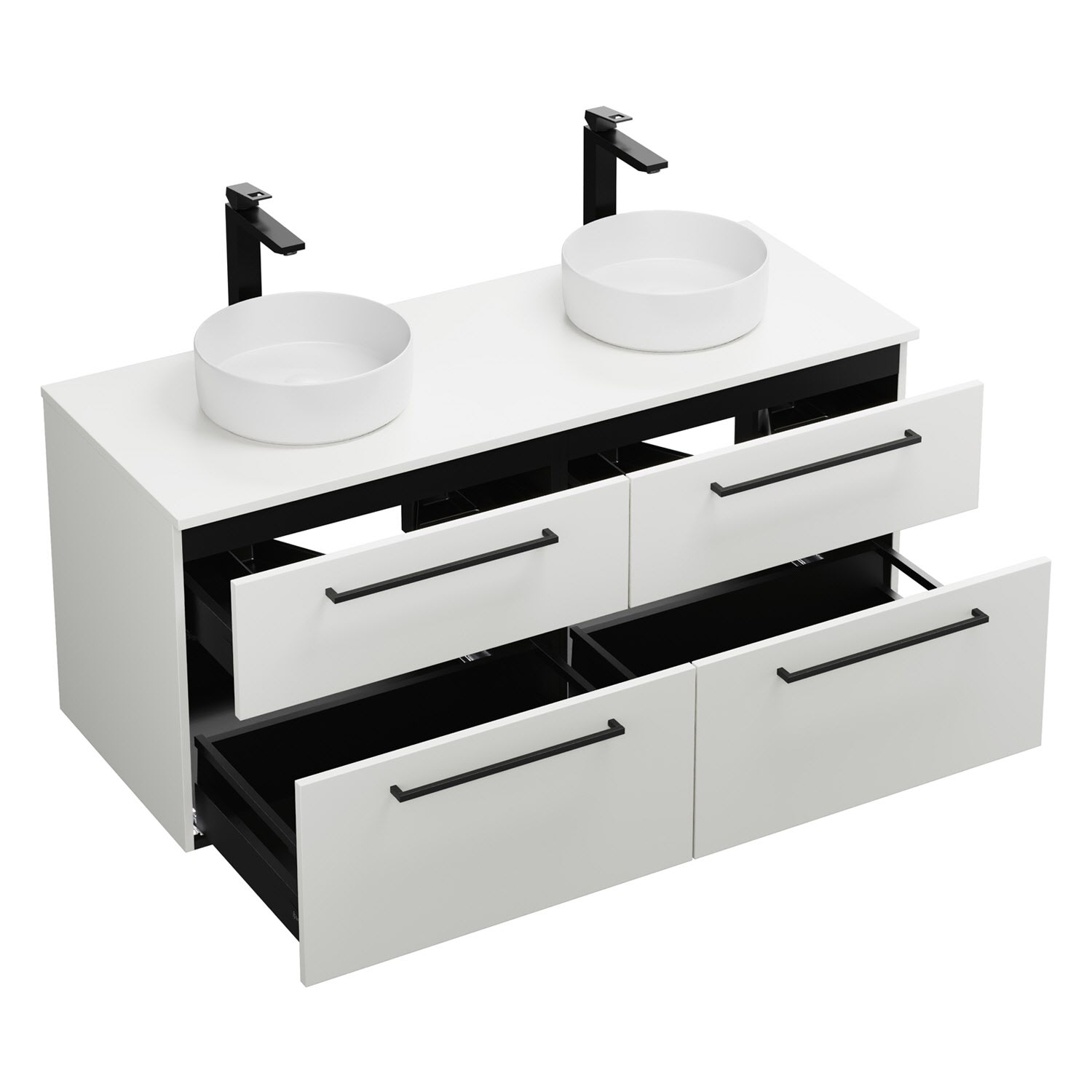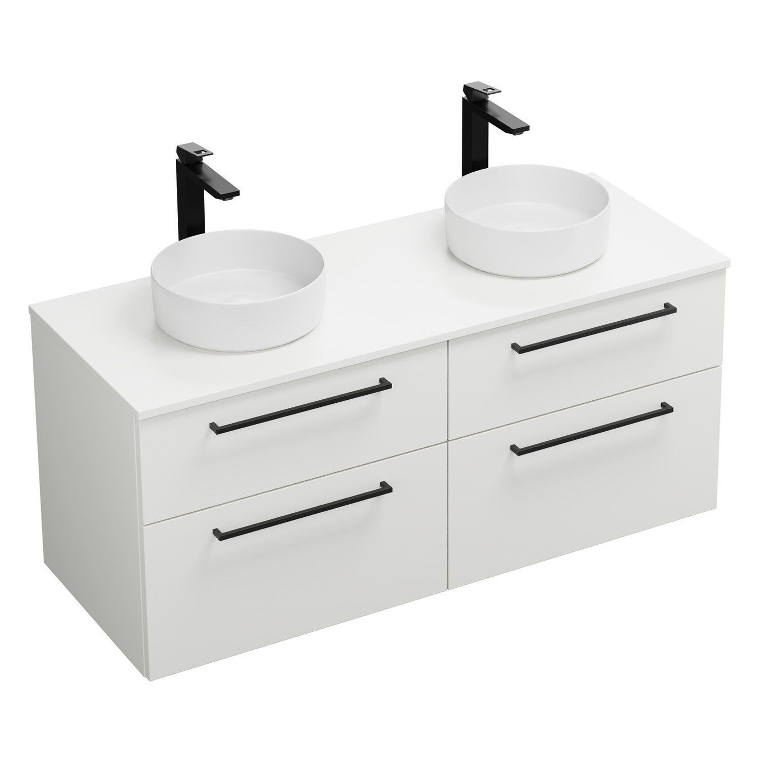 burgbad Eqio Waschtischkombination mit Keramik-Aufsatzwaschtisch 140 cm, links und rechts, mit Stangengriff G0234