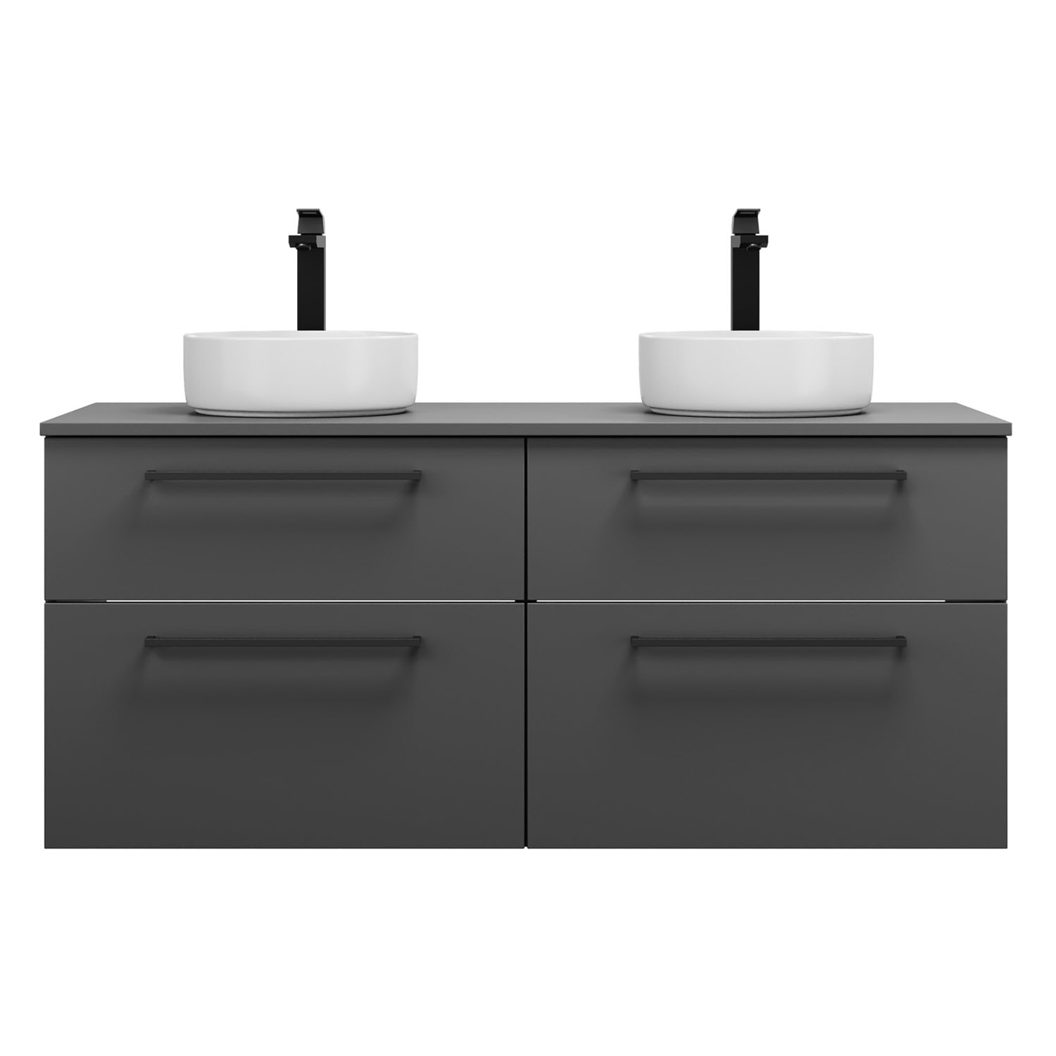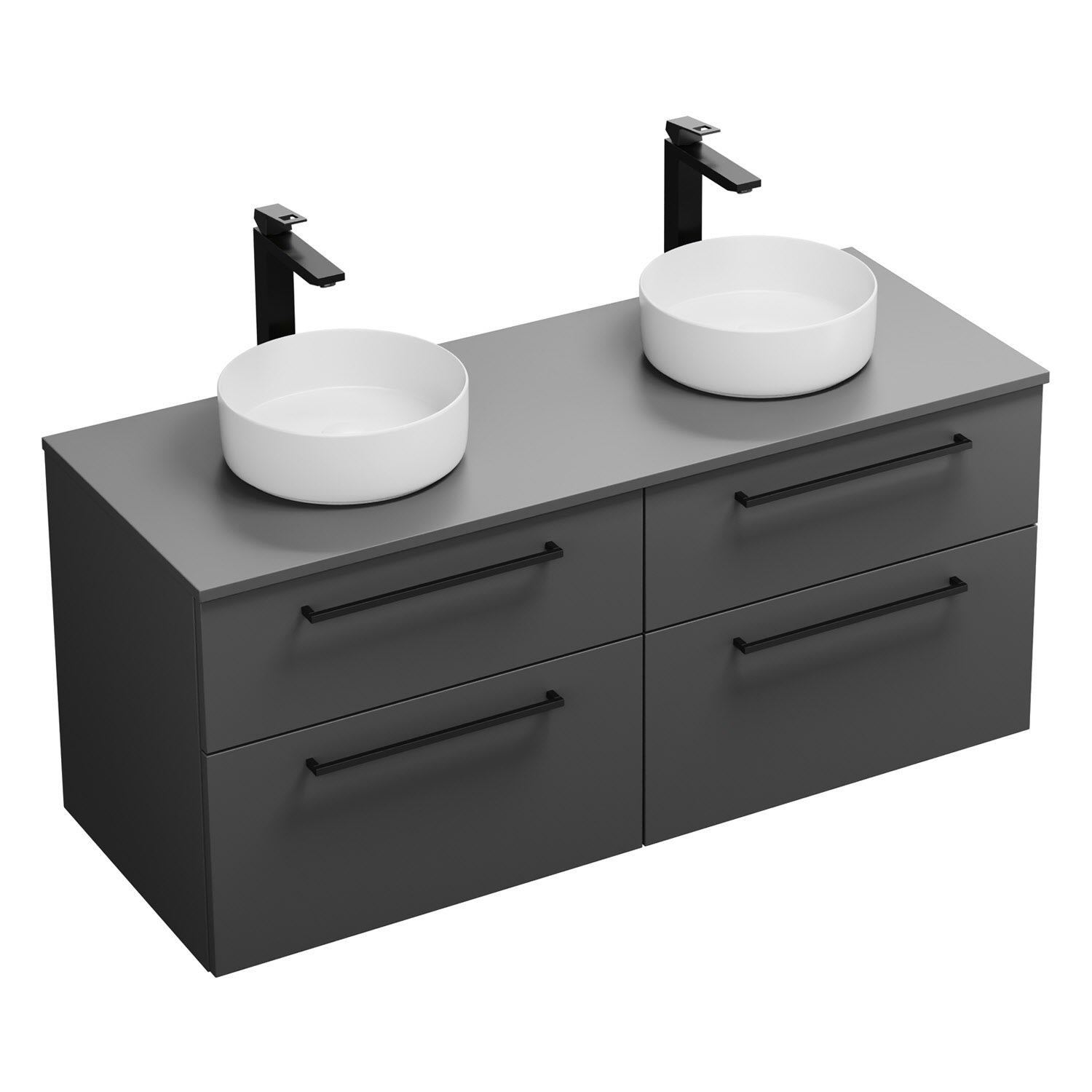 burgbad Eqio Waschtischkombination mit Keramik-Aufsatzwaschtisch 140 cm, links und rechts, mit Stangengriff G0234