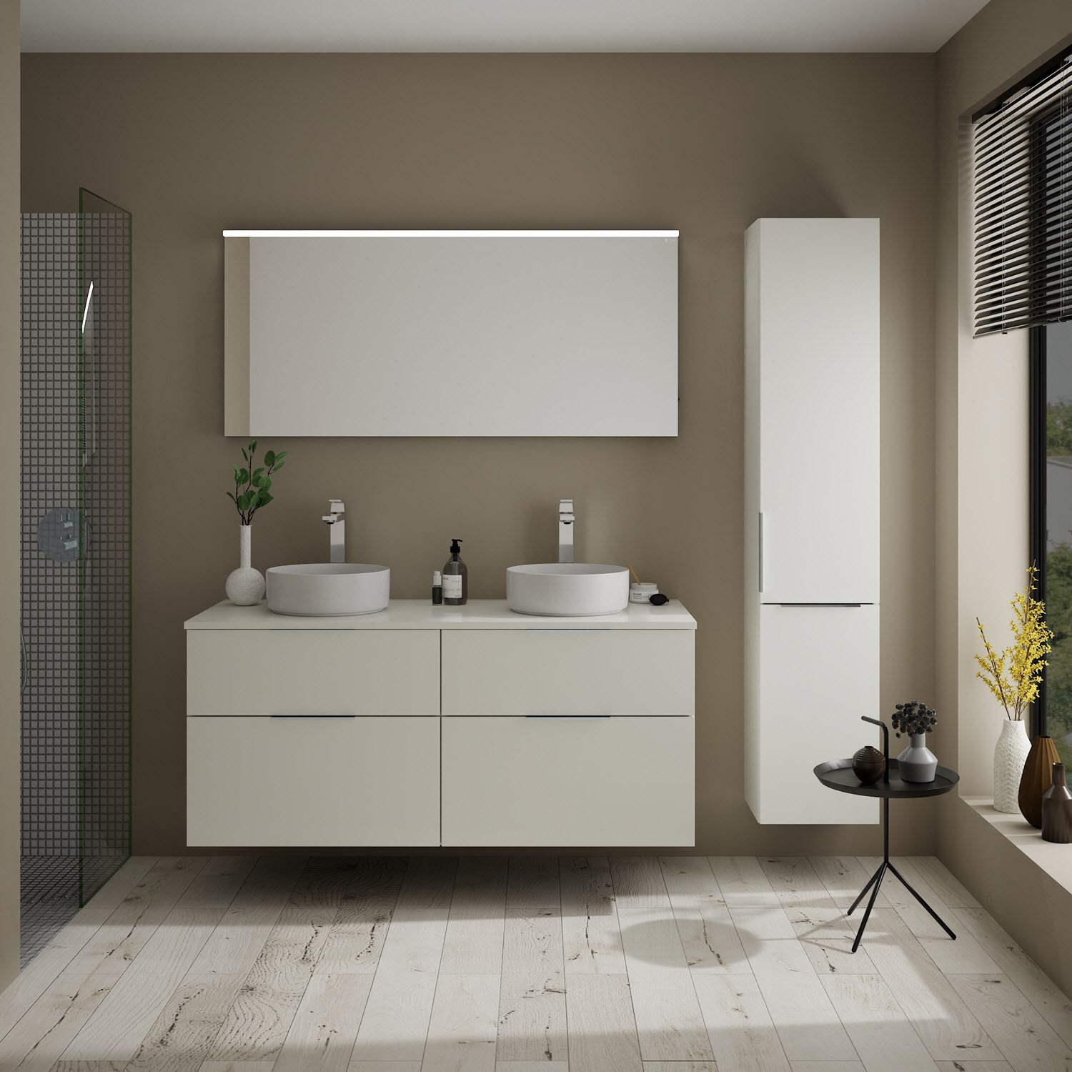 burgbad Eqio Waschtischkombination mit Keramik-Aufsatzwaschtisch 140 cm, links und rechts, mit Griff G0146