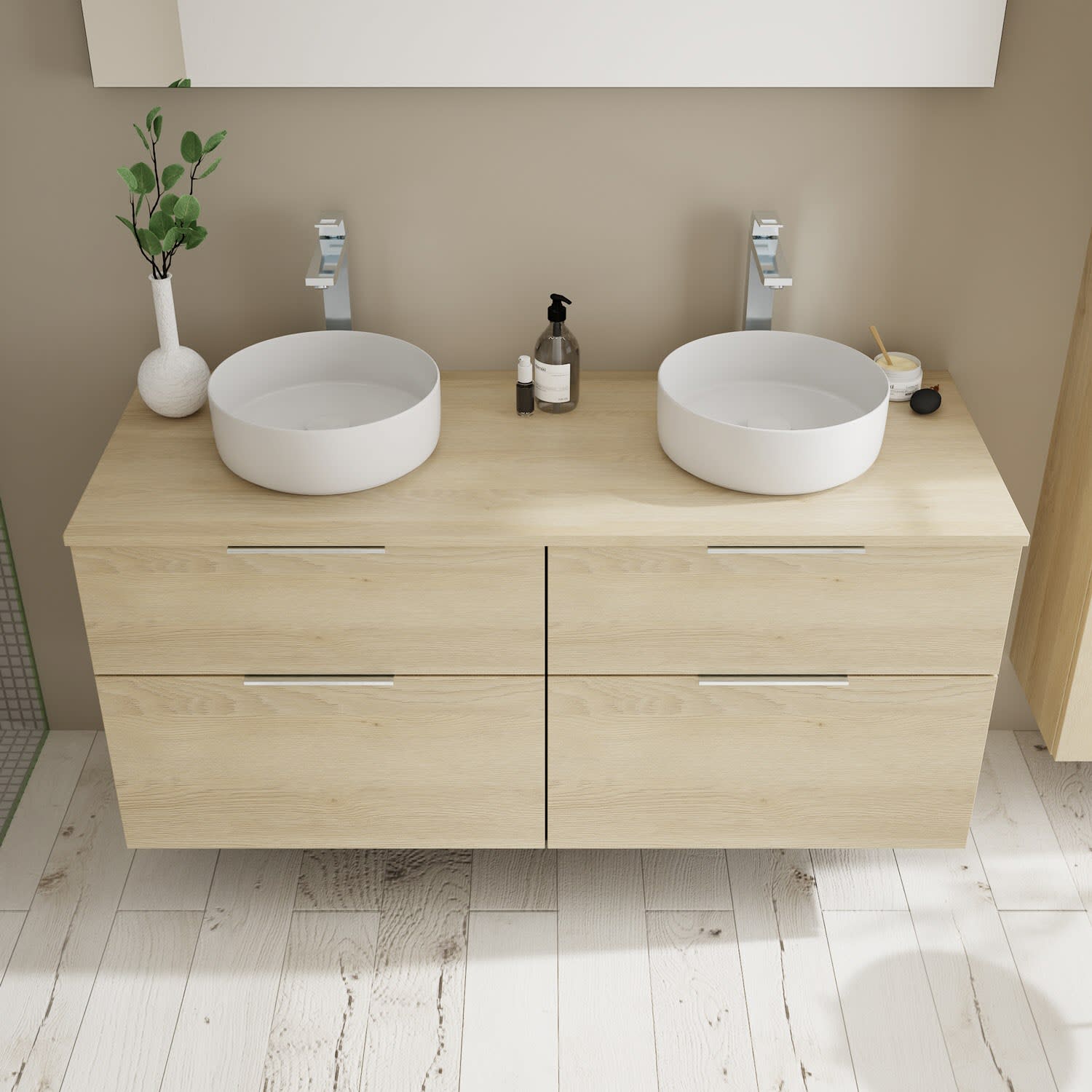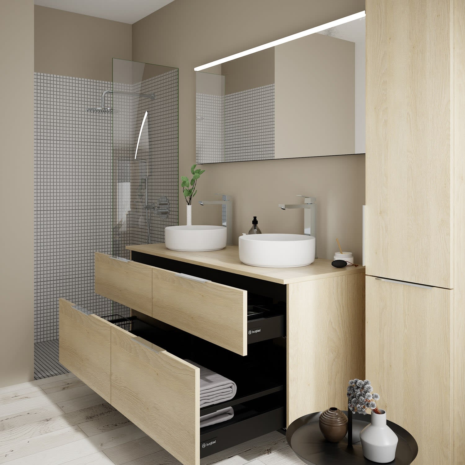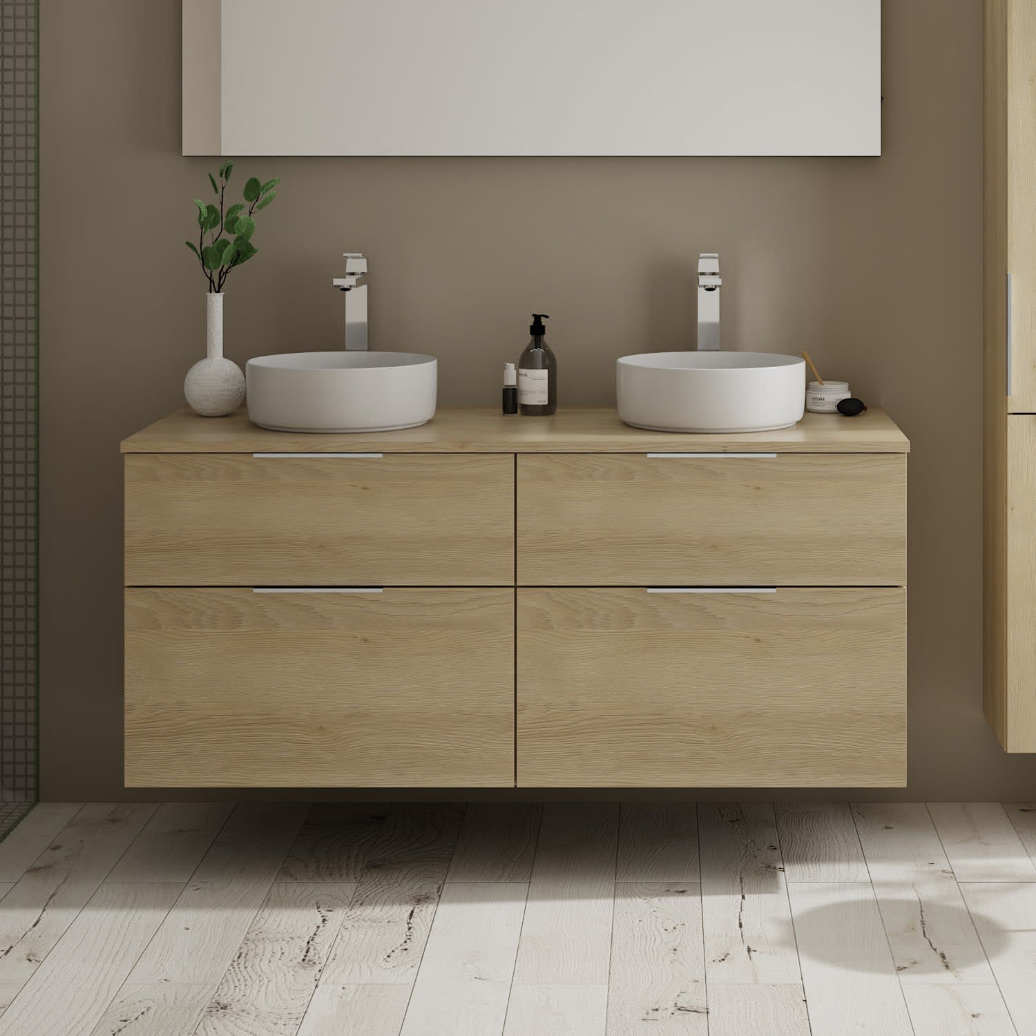 burgbad Eqio Waschtischkombination mit Keramik-Aufsatzwaschtisch 140 cm, mit Griff G0146