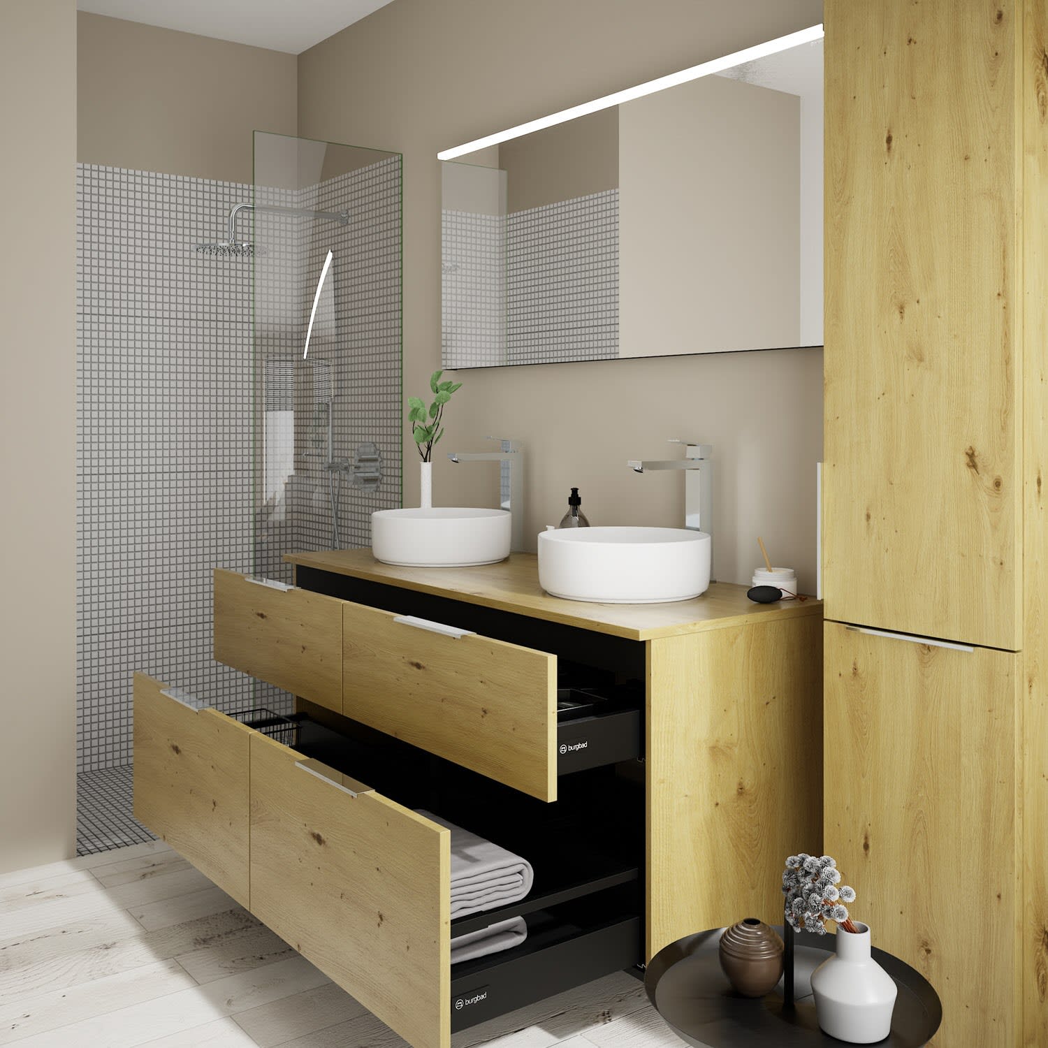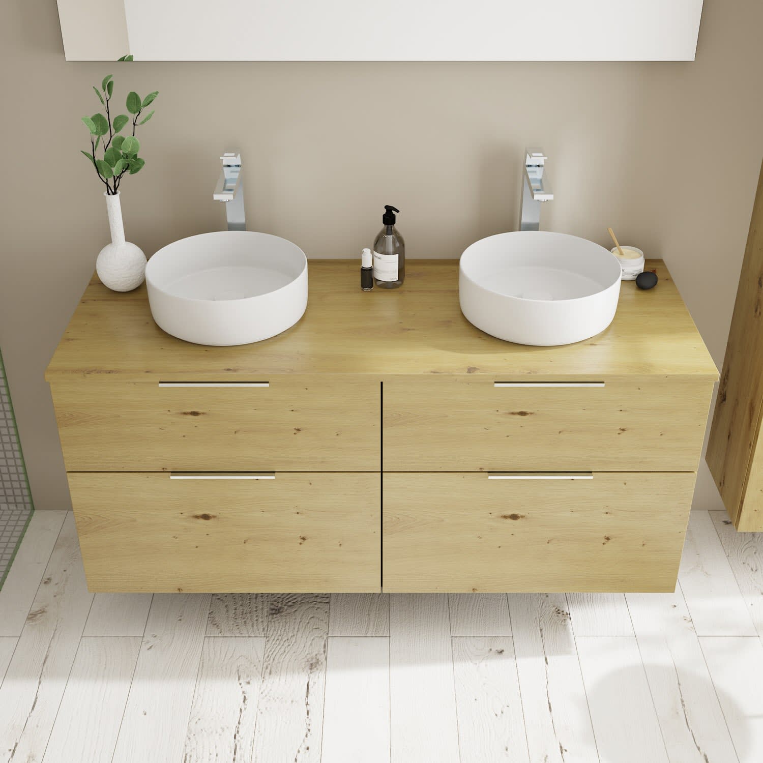 burgbad Eqio Waschtischkombination mit Keramik-Aufsatzwaschtisch 140 cm, mit Griff G0146