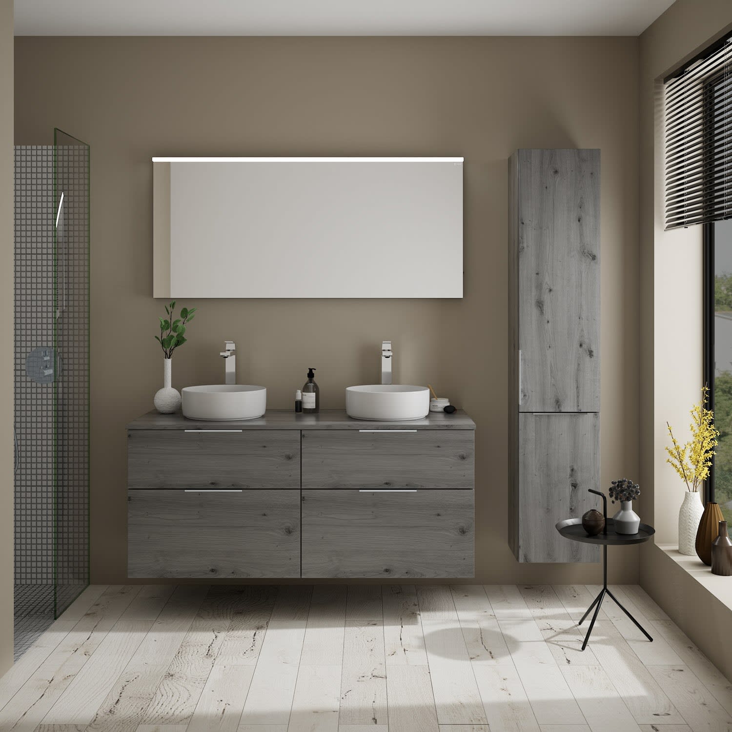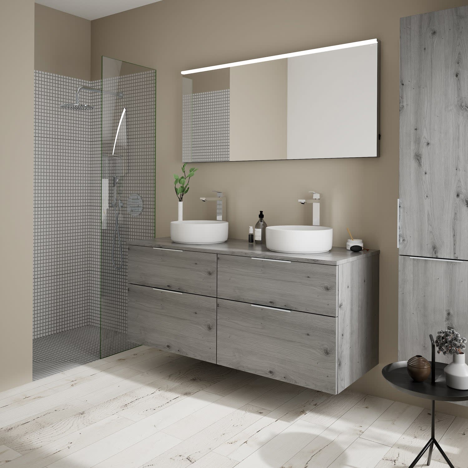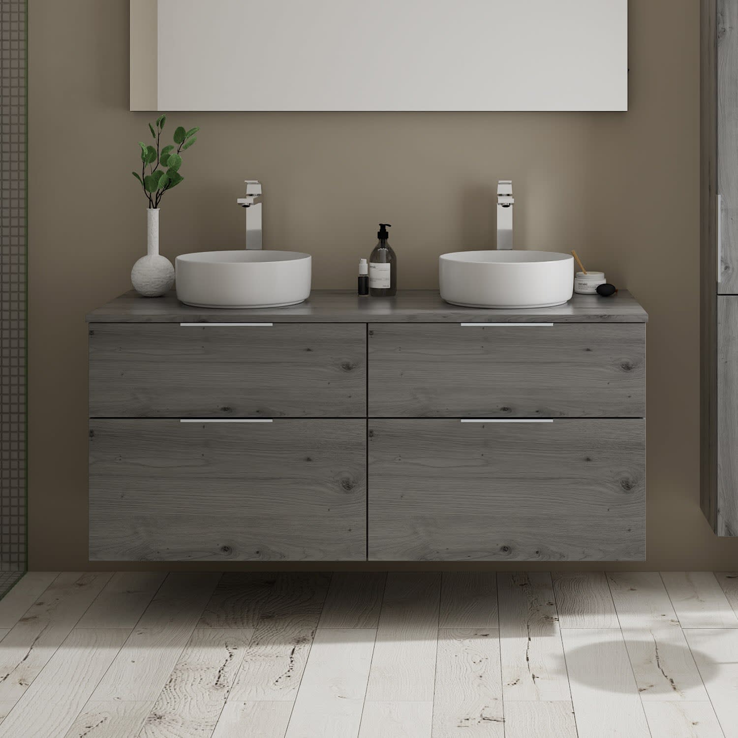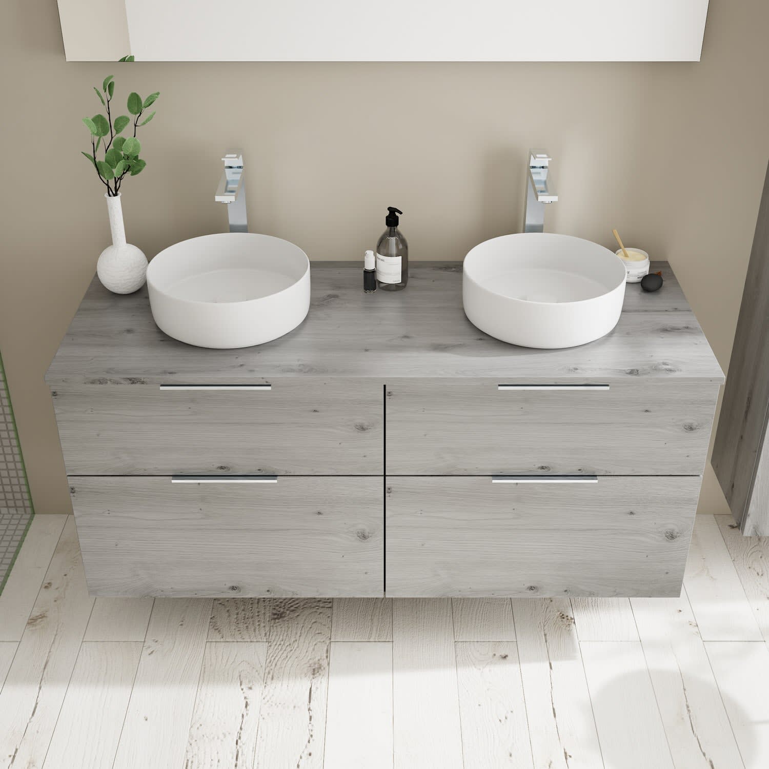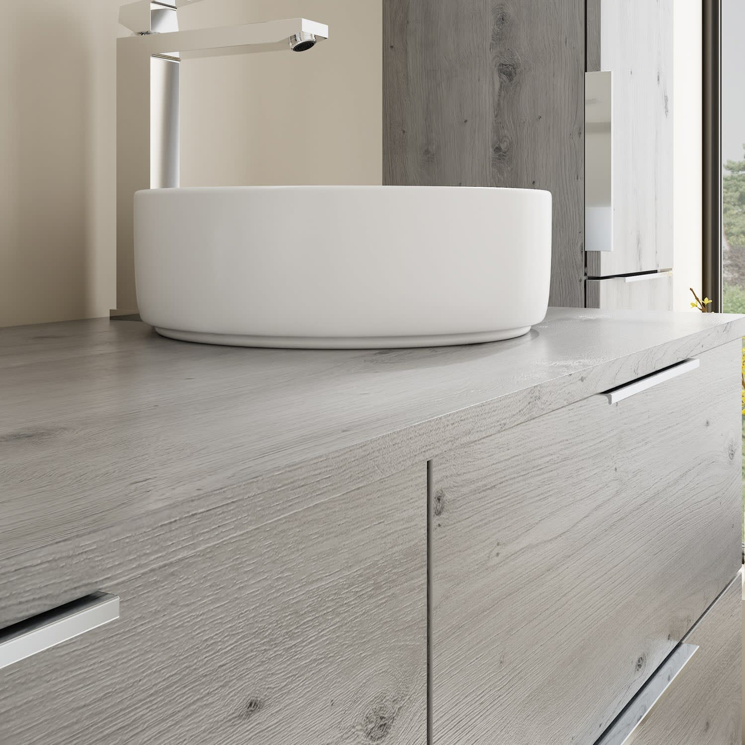 burgbad Eqio Waschtischkombination mit Keramik-Aufsatzwaschtisch 140 cm, mit Griff G0146