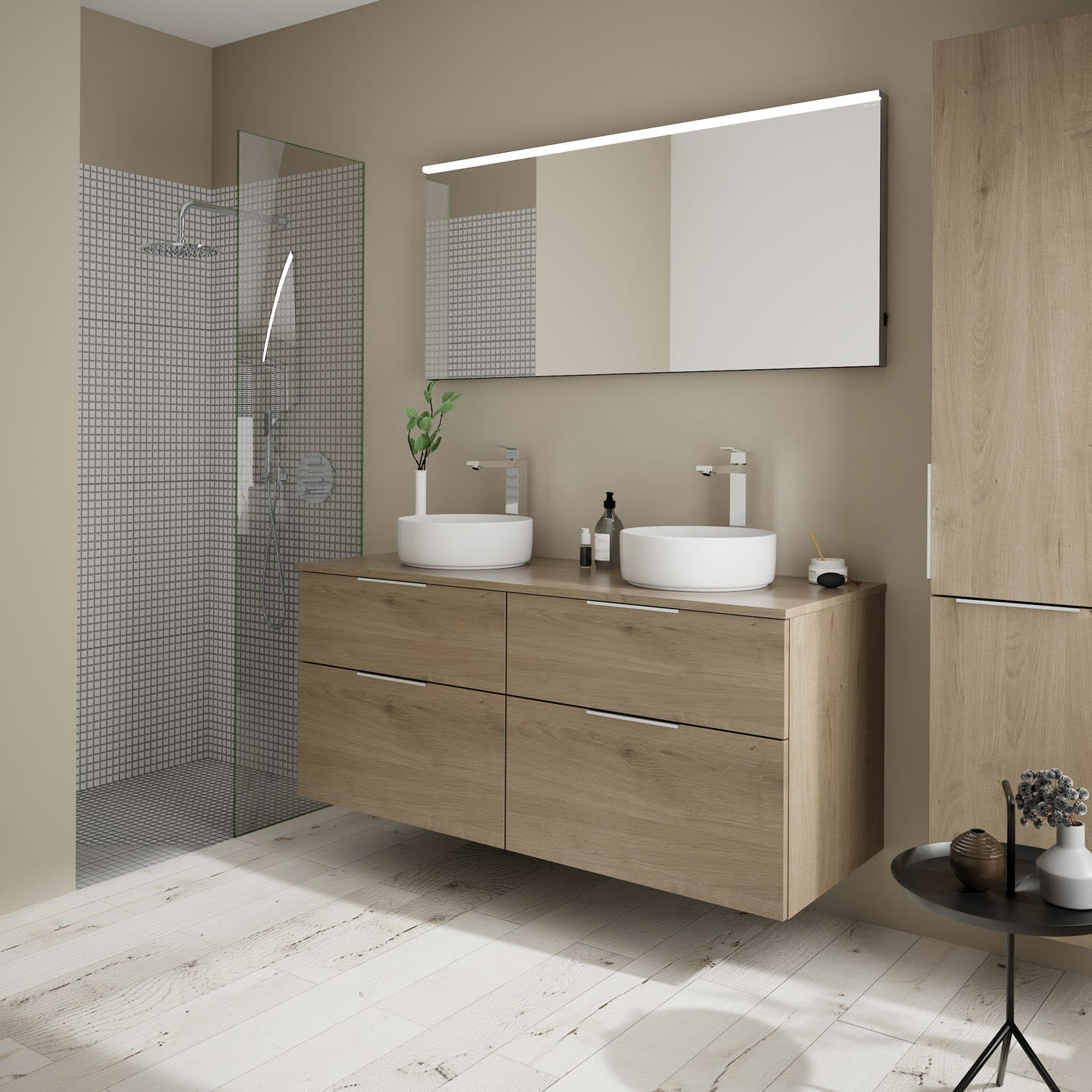 burgbad Eqio Waschtischkombination mit Keramik-Aufsatzwaschtisch 140 cm, links und rechts, mit Griff G0146
