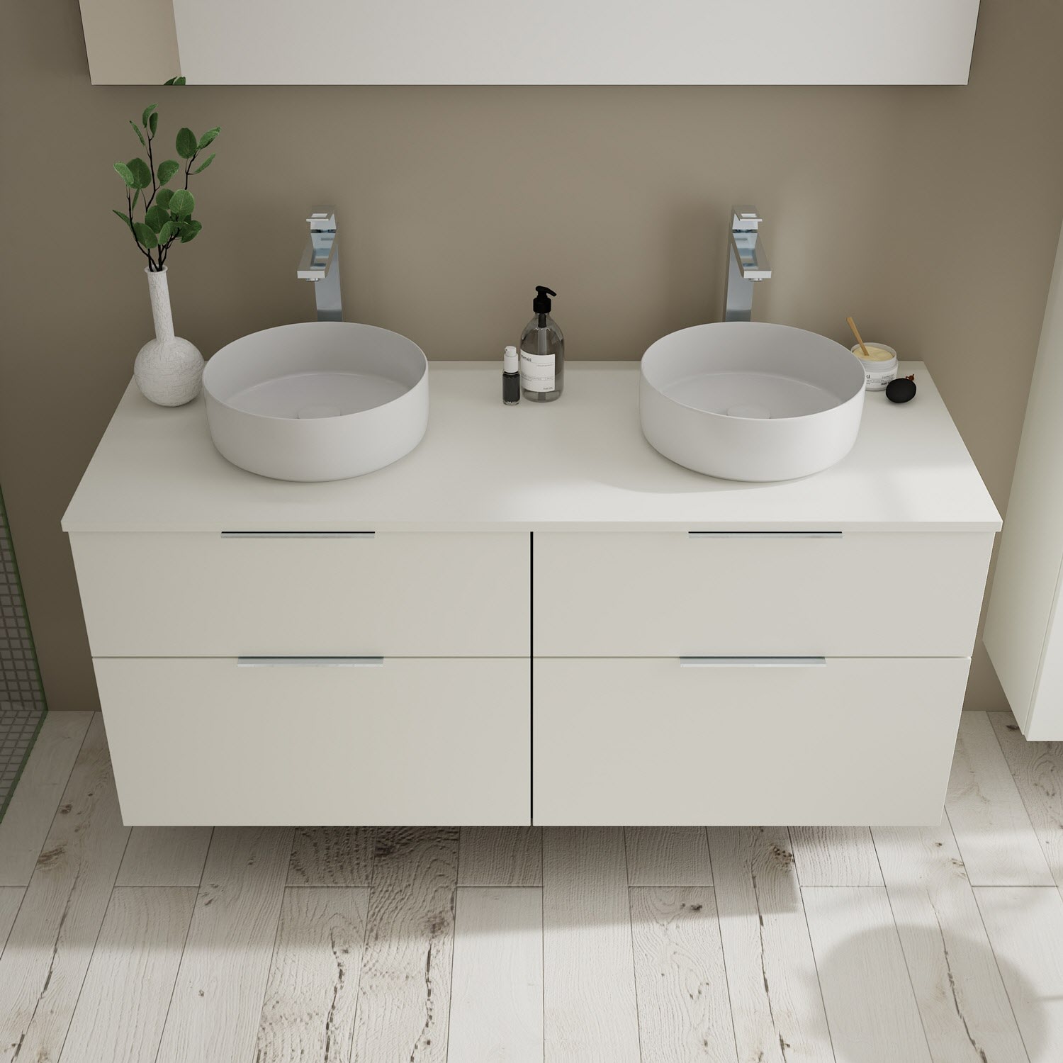 burgbad Eqio Waschtischkombination mit Keramik-Aufsatzwaschtisch 140 cm, links und rechts, mit Griff G0146