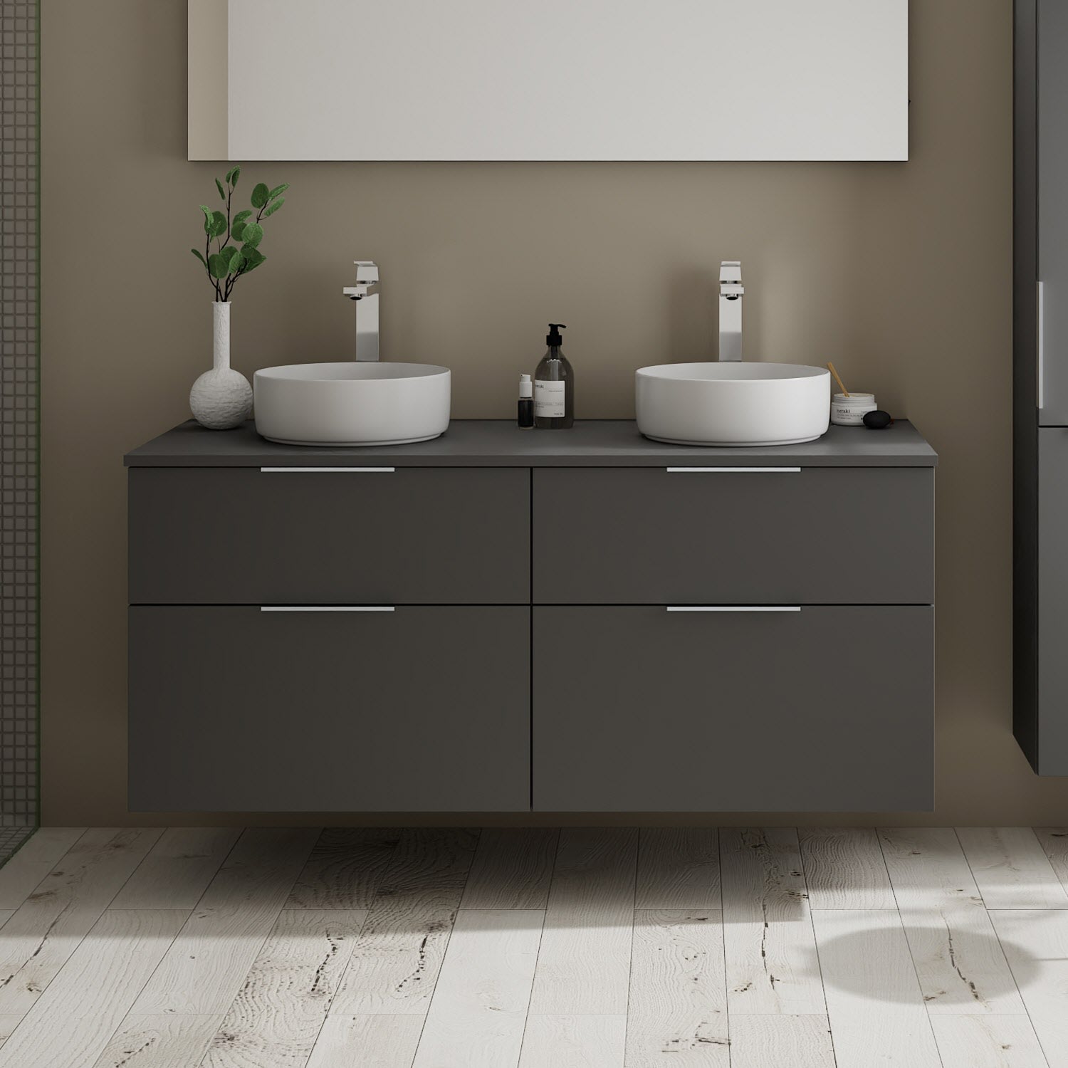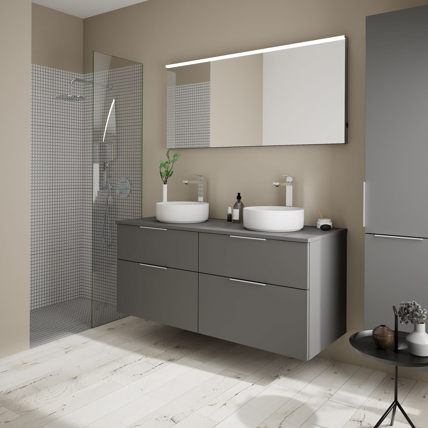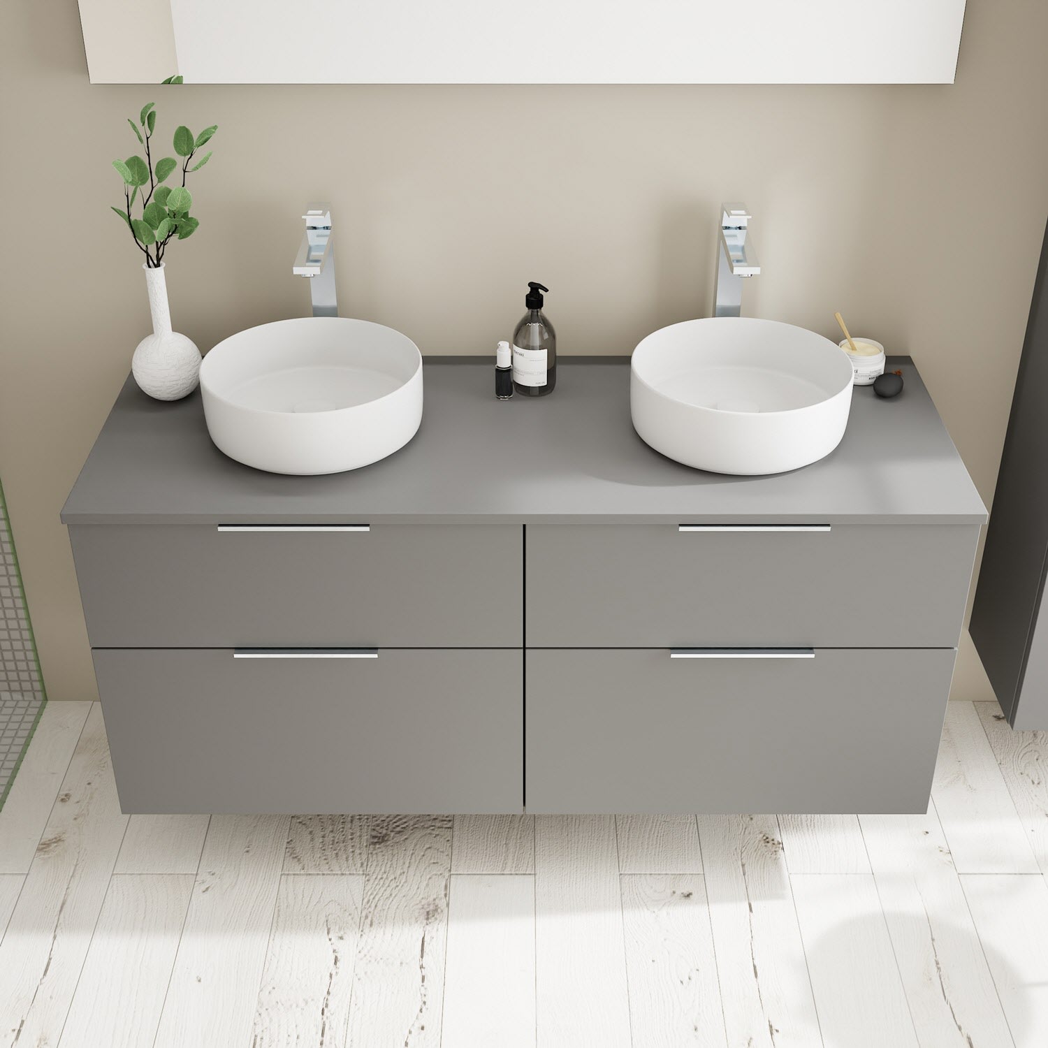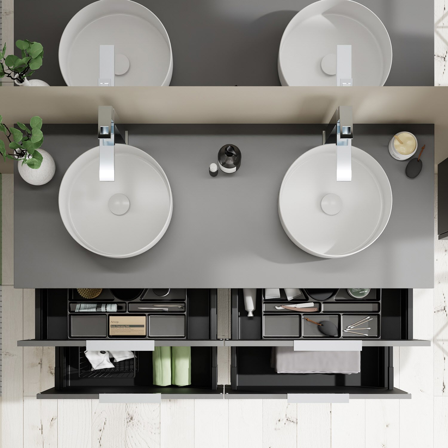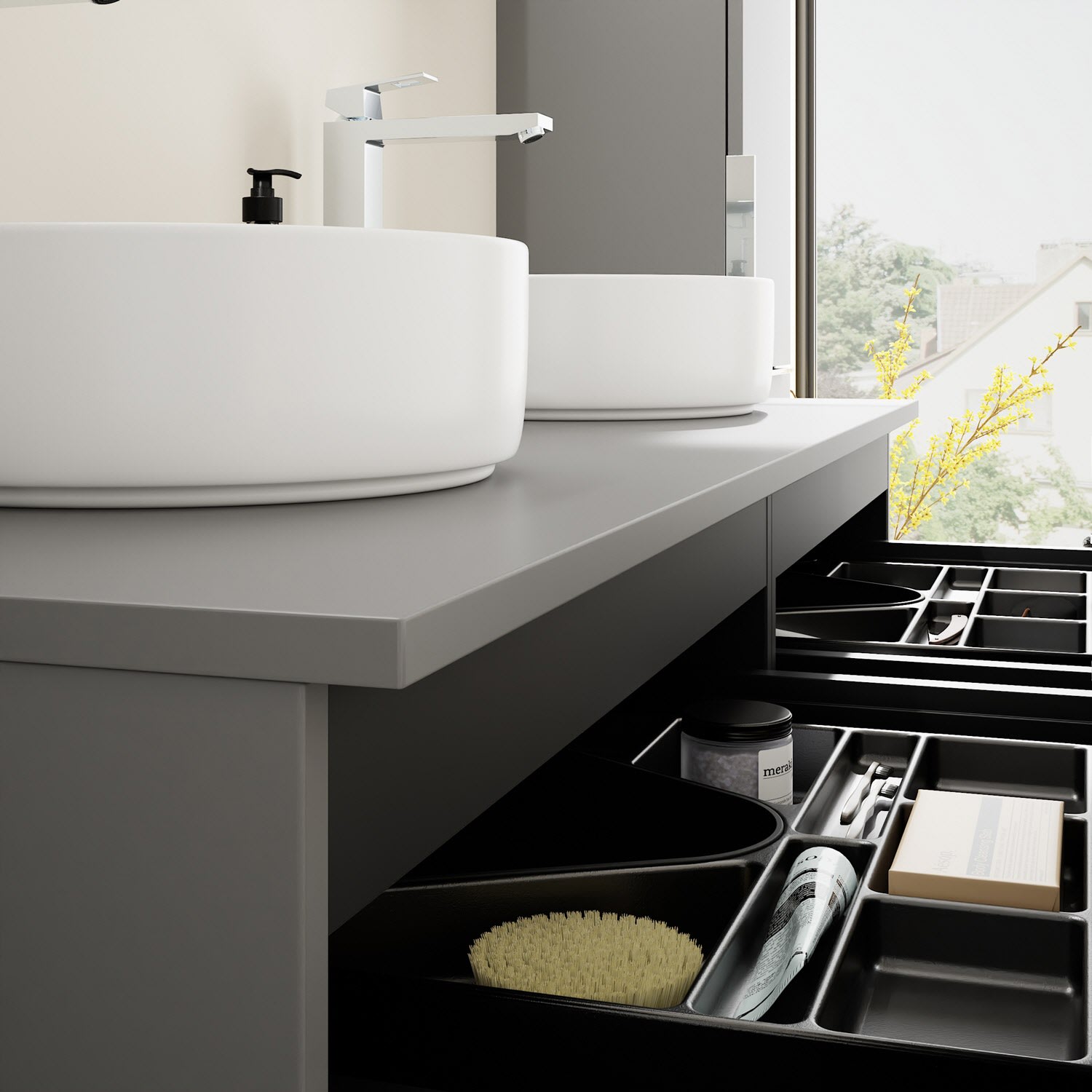 burgbad Eqio Waschtischkombination mit Keramik-Aufsatzwaschtisch 140 cm, links und rechts, mit Griff G0146