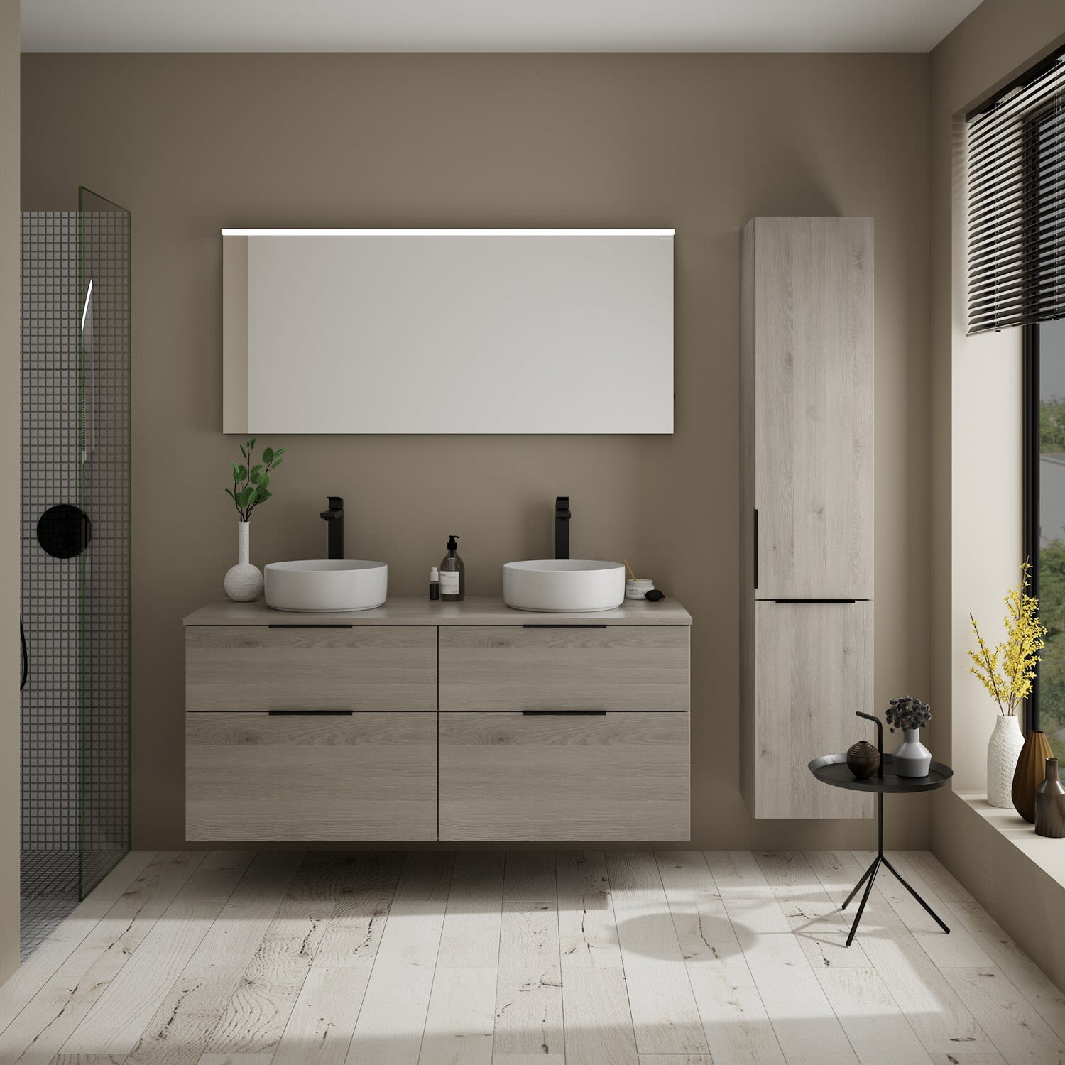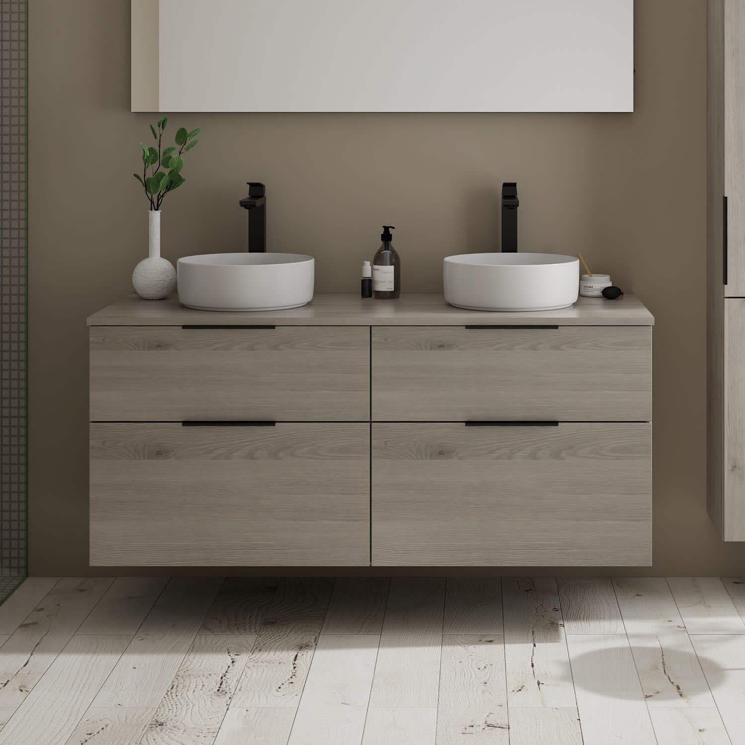 burgbad Eqio Waschtischkombination mit Keramik-Aufsatzwaschtisch 140 cm, mit Griff G0200