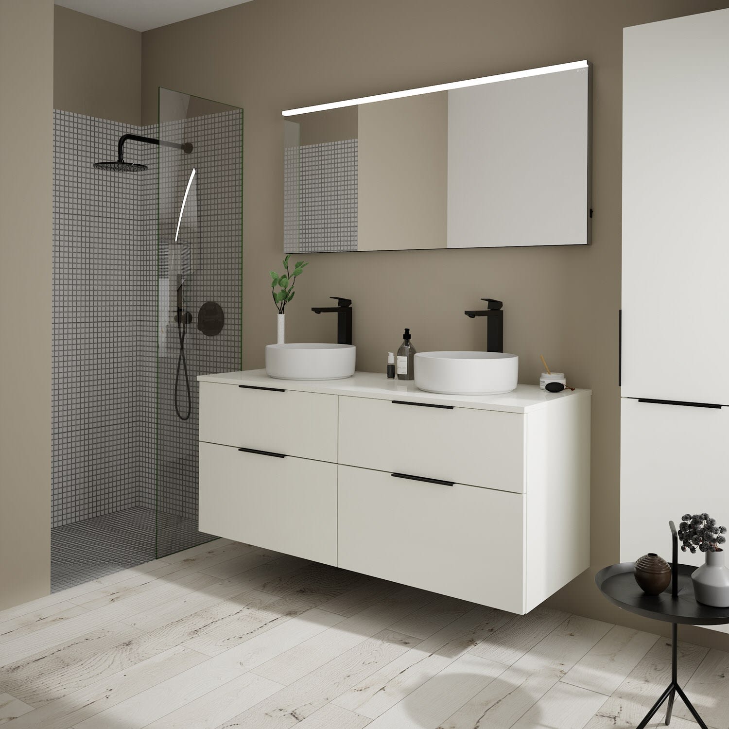 burgbad Eqio Waschtischkombination mit Keramik-Aufsatzwaschtisch 140 cm, mit Griff G0200