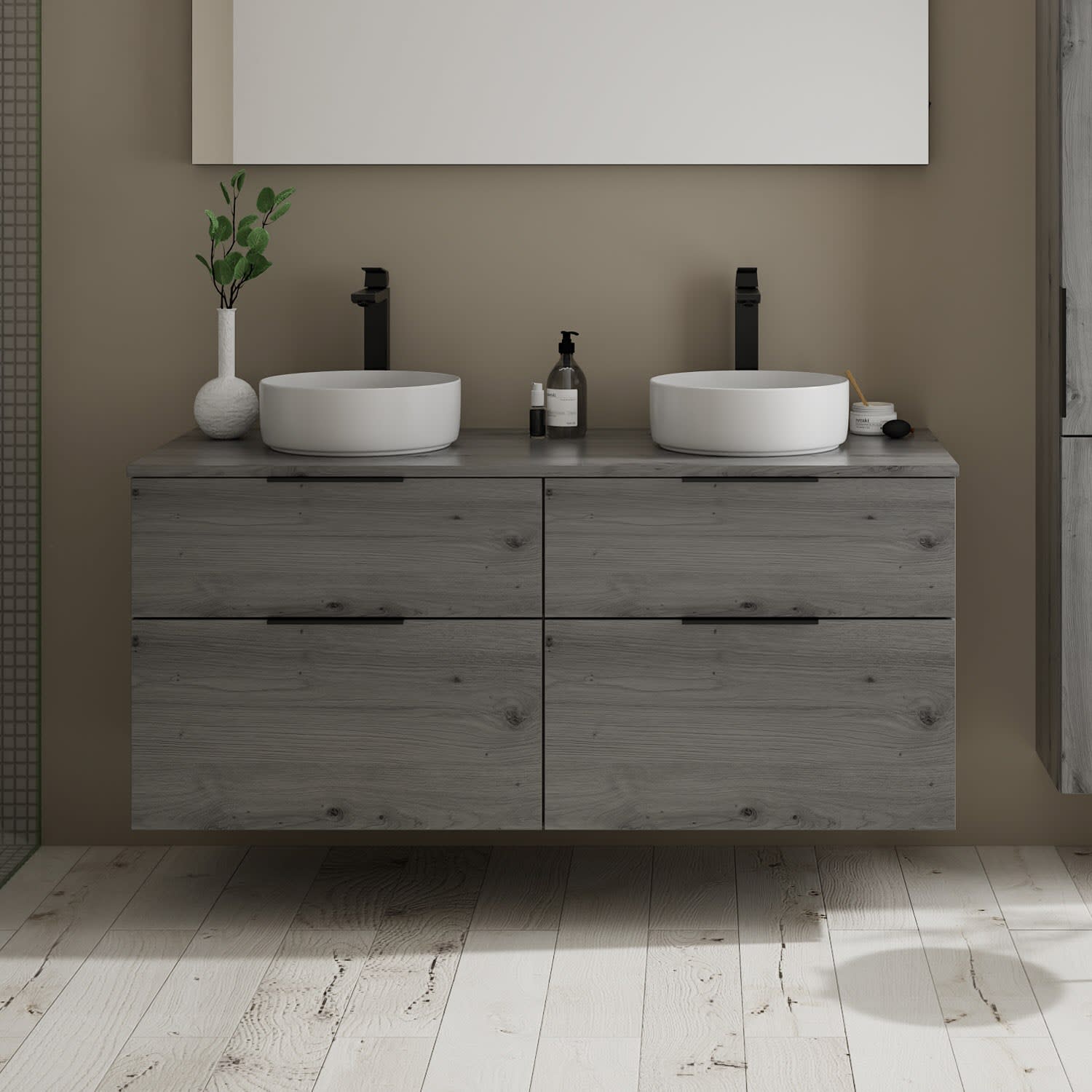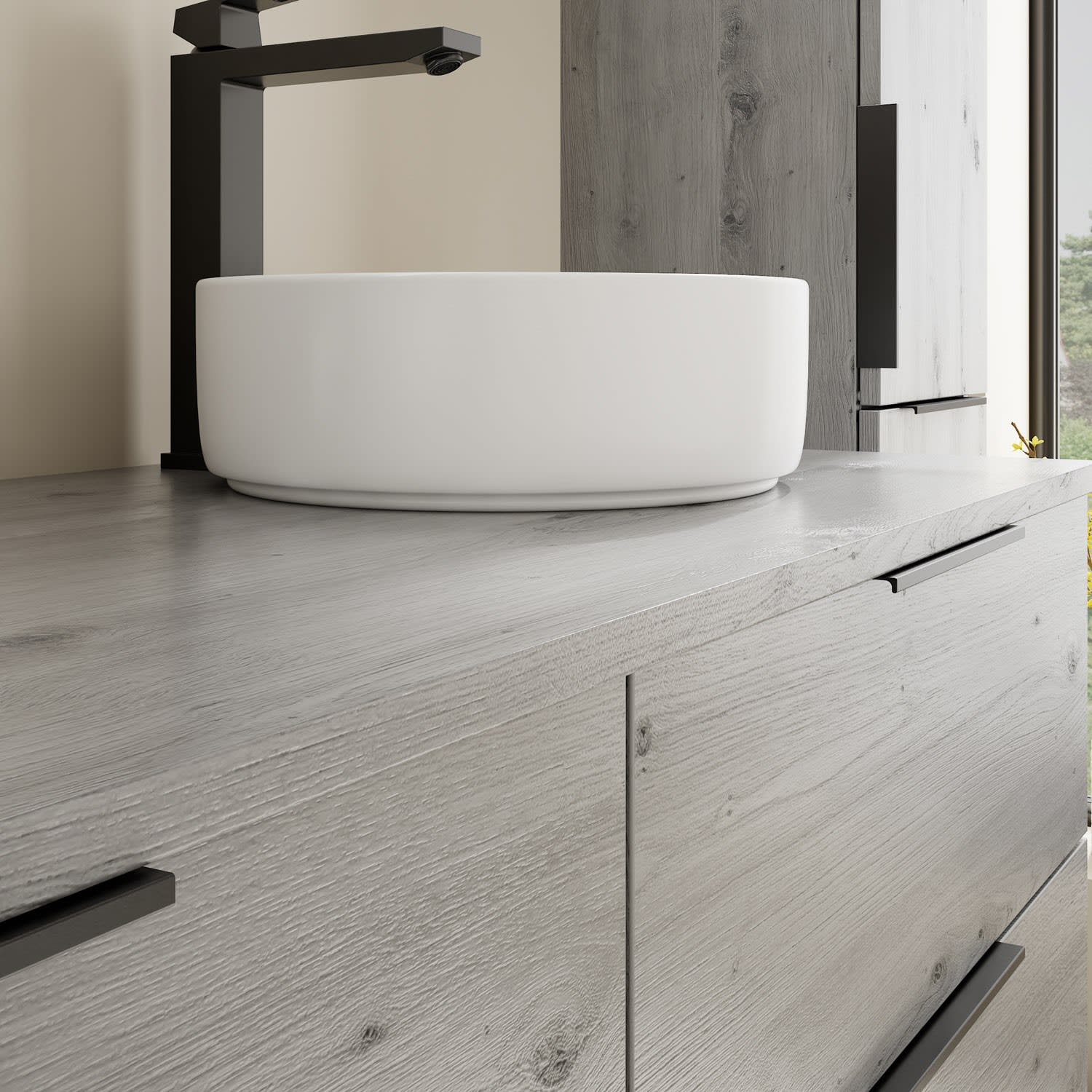 burgbad Eqio Waschtischkombination mit Keramik-Aufsatzwaschtisch 140 cm, mit Griff G0200