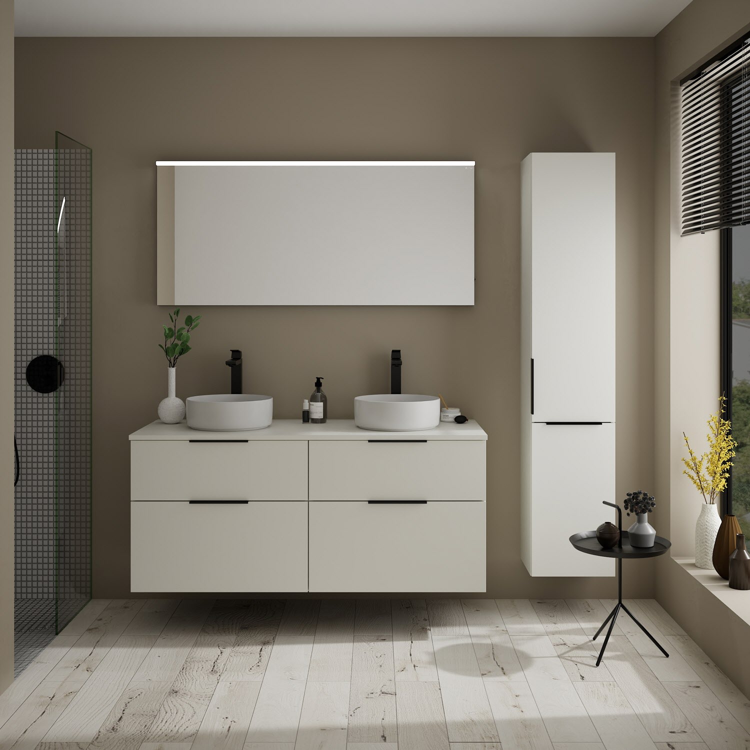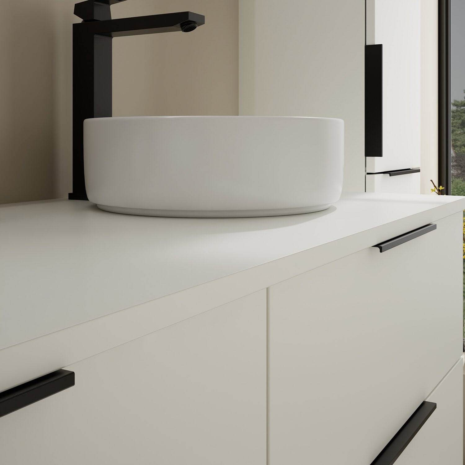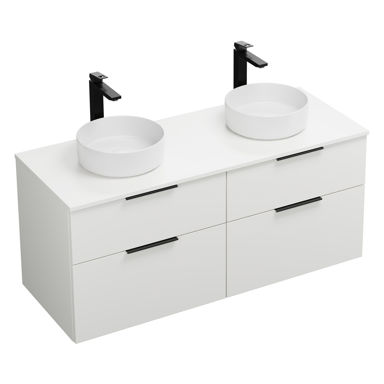 burgbad Eqio Waschtischkombination mit Keramik-Aufsatzwaschtisch 140 cm, links und rechts, mit Griff G0200