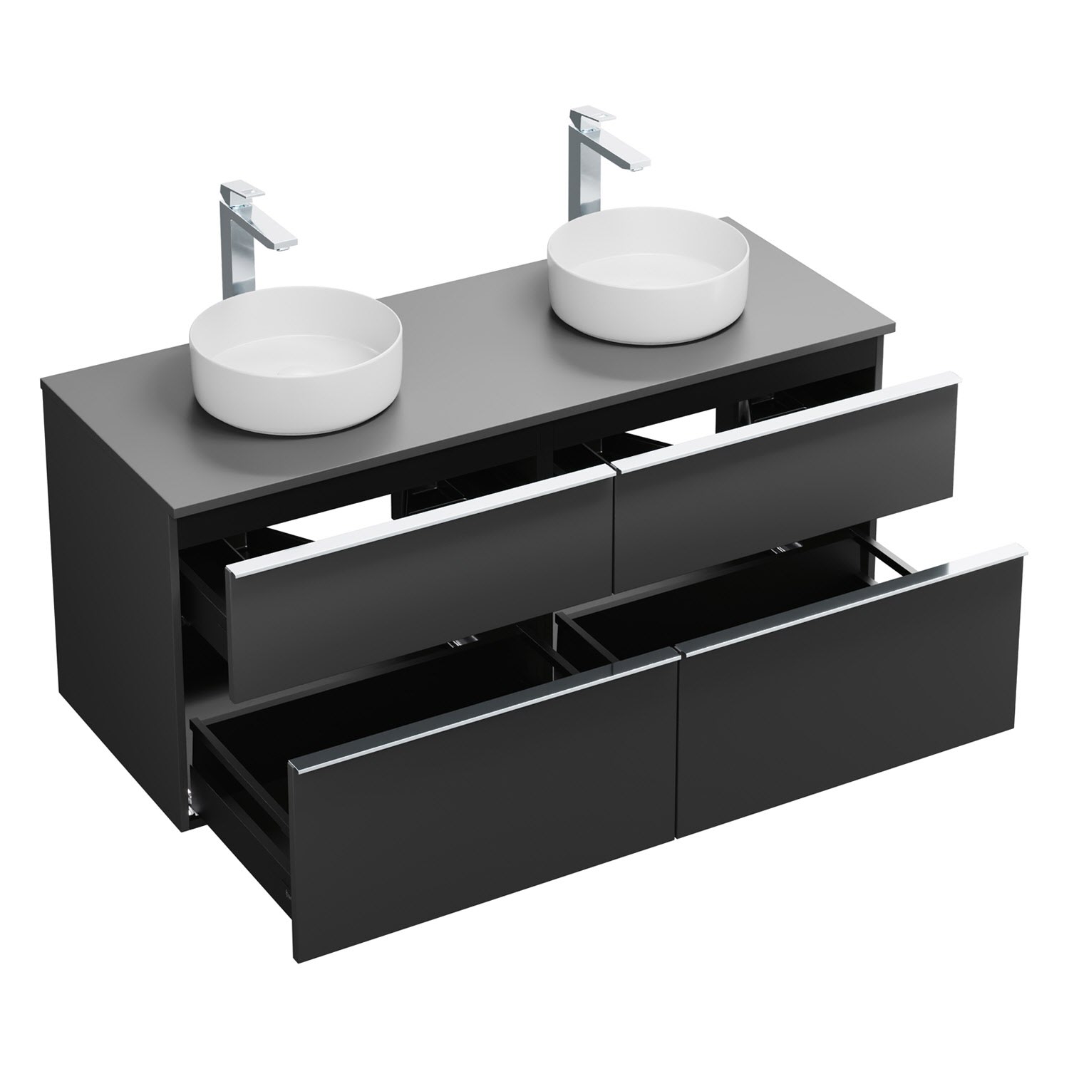 burgbad Eqio Waschtischkombination mit Keramik-Aufsatzwaschtisch 140 cm, links und rechts, mit Griffleiste G0251