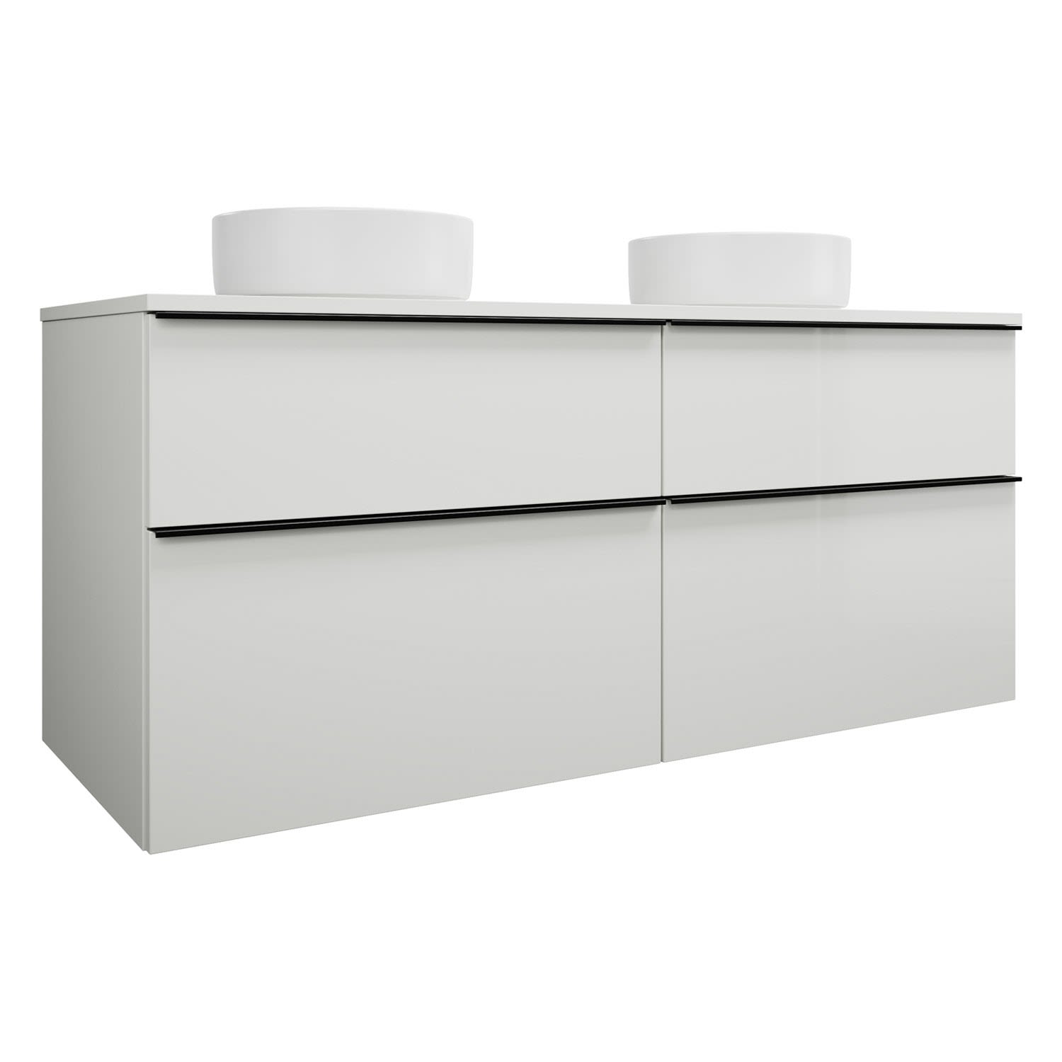 burgbad Eqio Waschtischkombination mit Keramik-Aufsatzwaschtisch 140 cm, links und rechts, mit Griffleiste G0252