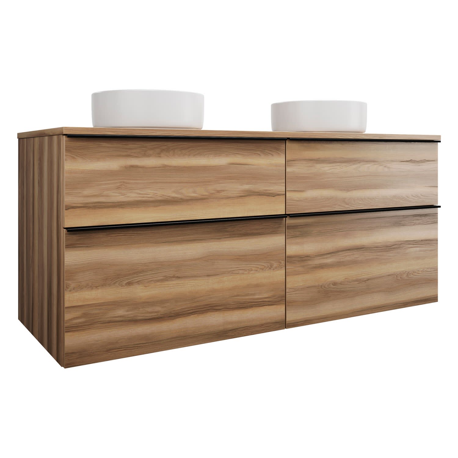 burgbad Eqio Waschtischkombination mit Keramik-Aufsatzwaschtisch 140 cm, links und rechts, mit Griffleiste G0252