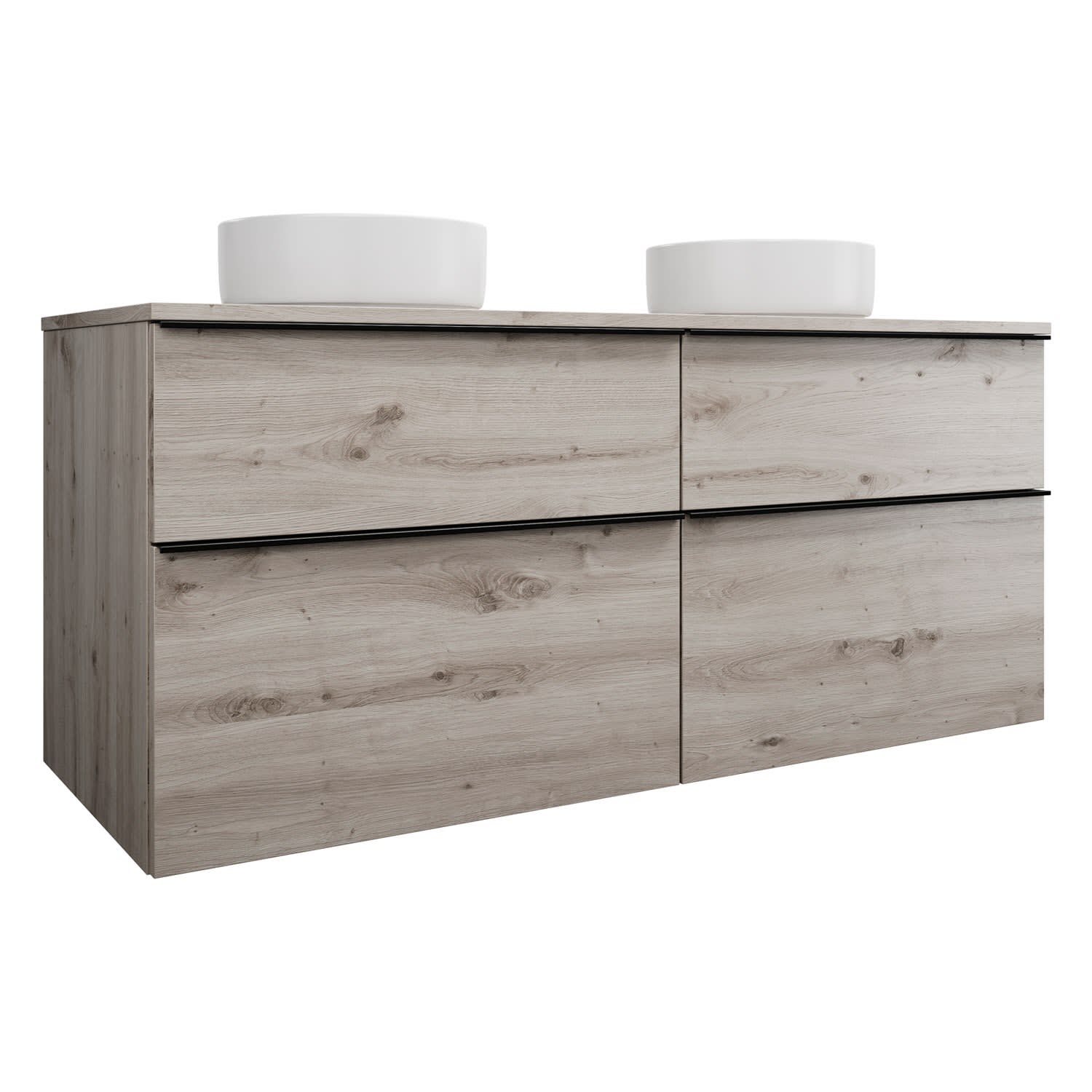 burgbad Eqio Waschtischkombination mit Keramik-Aufsatzwaschtisch 140 cm, links und rechts, mit Griffleiste G0252