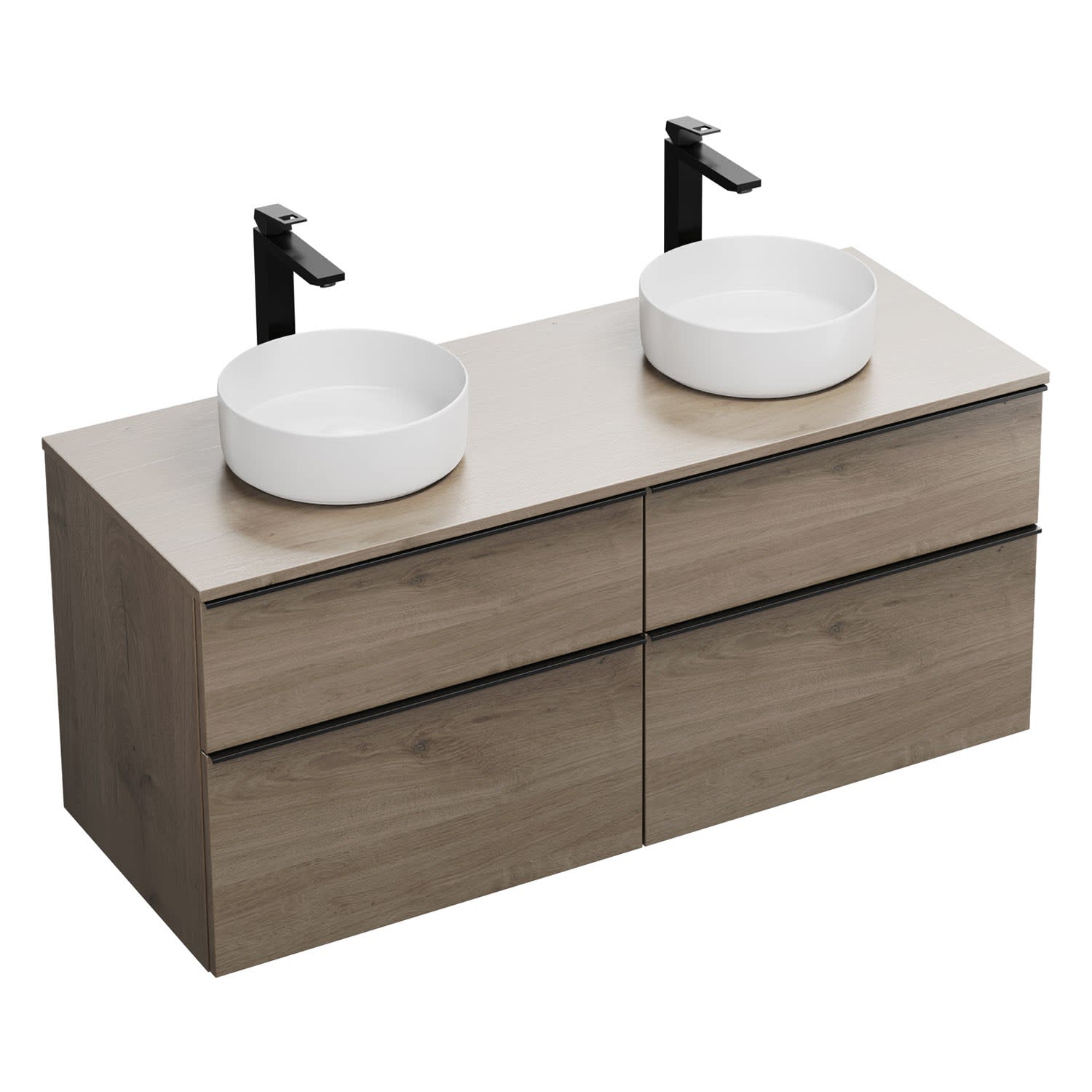 burgbad Eqio Waschtischkombination mit Keramik-Aufsatzwaschtisch 140 cm, links und rechts, mit Griffleiste G0252