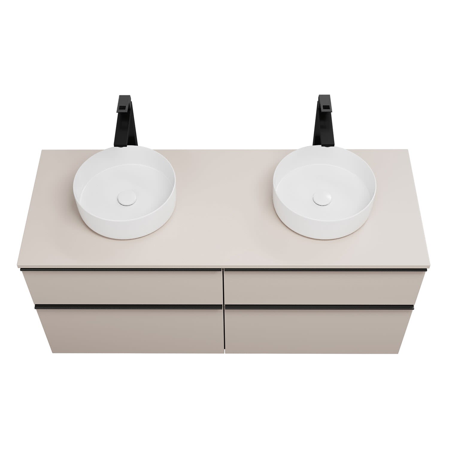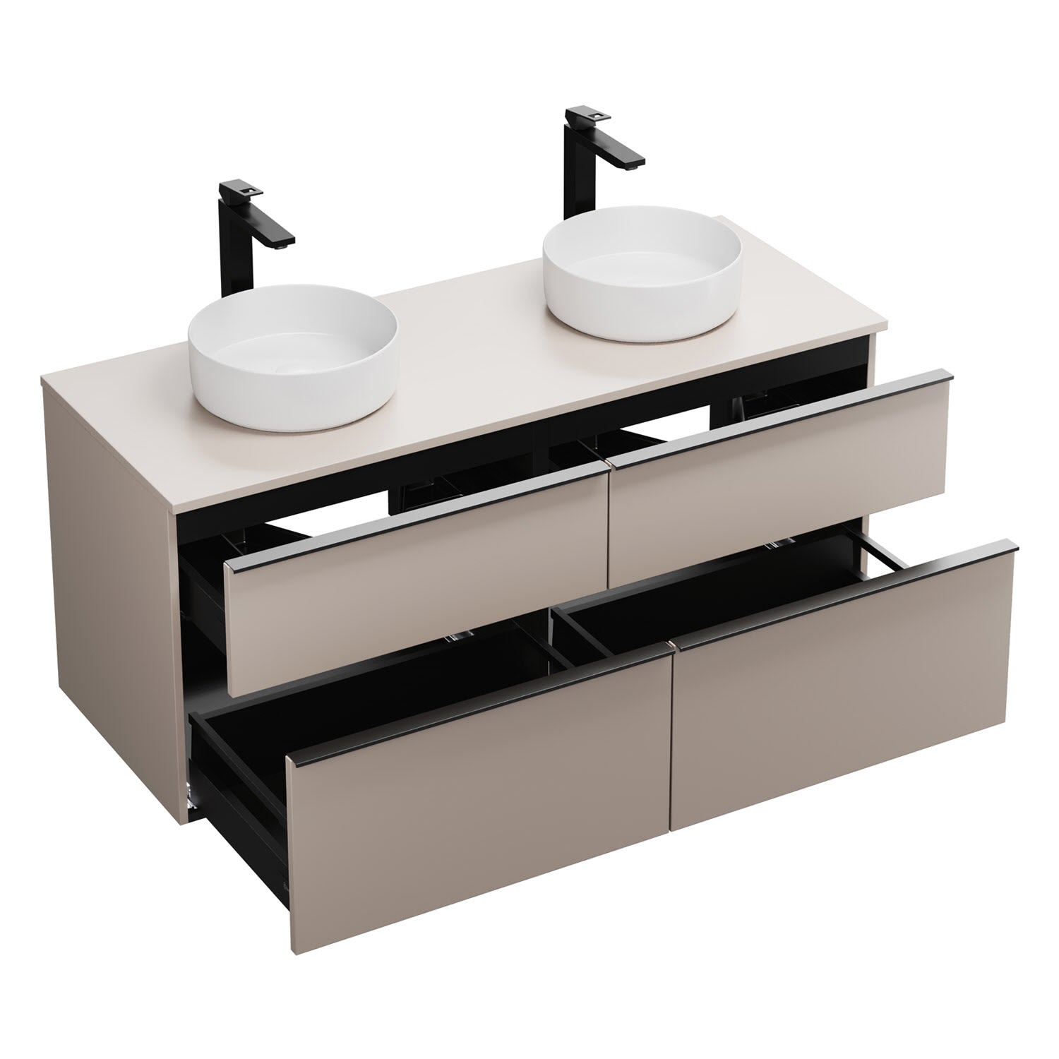 burgbad Eqio Waschtischkombination mit Keramik-Aufsatzwaschtisch 140 cm, links und rechts, mit Griffleiste G0252