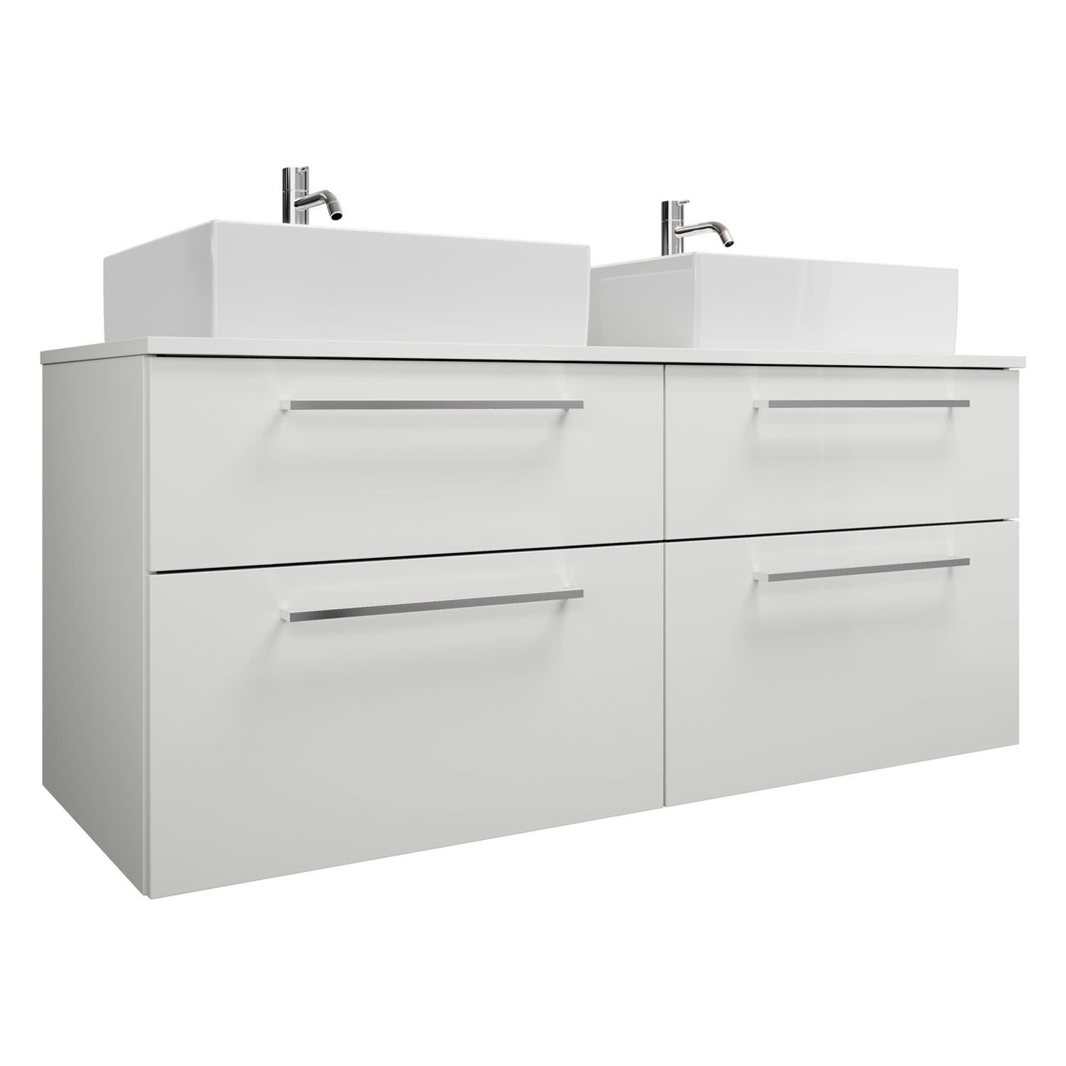 burgbad Eqio Waschtischkombination mit Keramik-Aufsatzwaschtisch 140 cm, links und rechts, mit Stangengriff P95