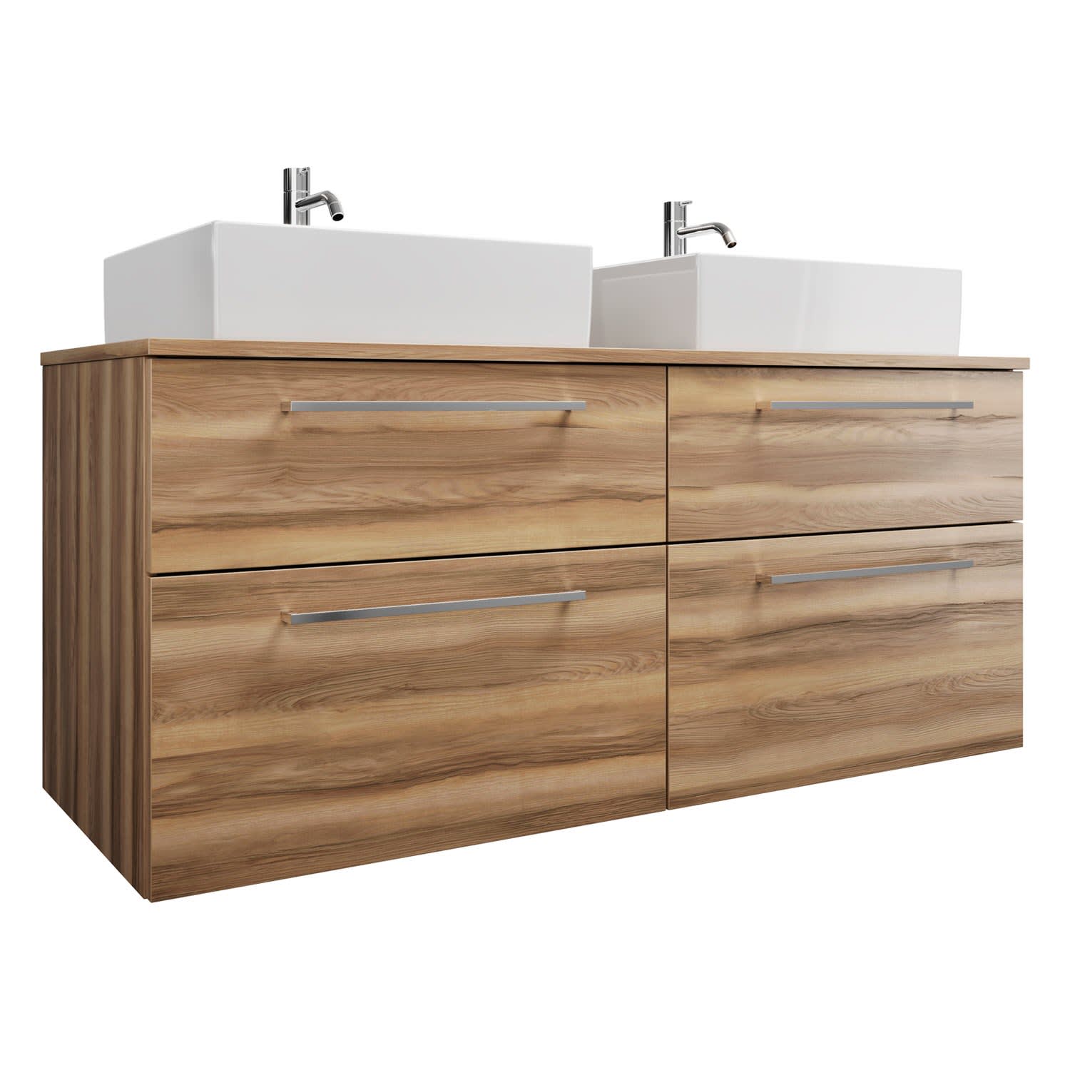 burgbad Eqio Waschtischkombination mit Keramik-Aufsatzwaschtisch 140 cm, links und rechts, mit Stangengriff P95