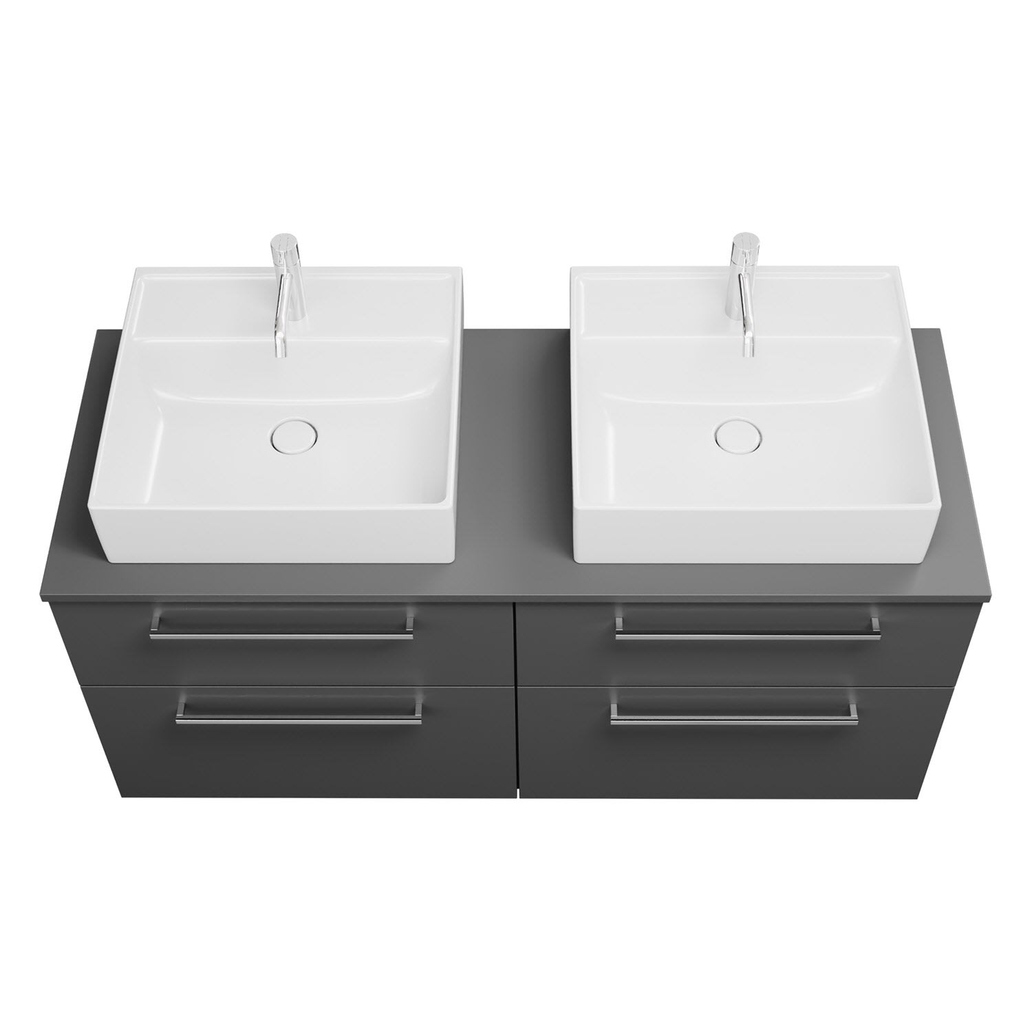 burgbad Eqio Waschtischkombination mit Keramik-Aufsatzwaschtisch 140 cm, links und rechts, mit Stangengriff P95