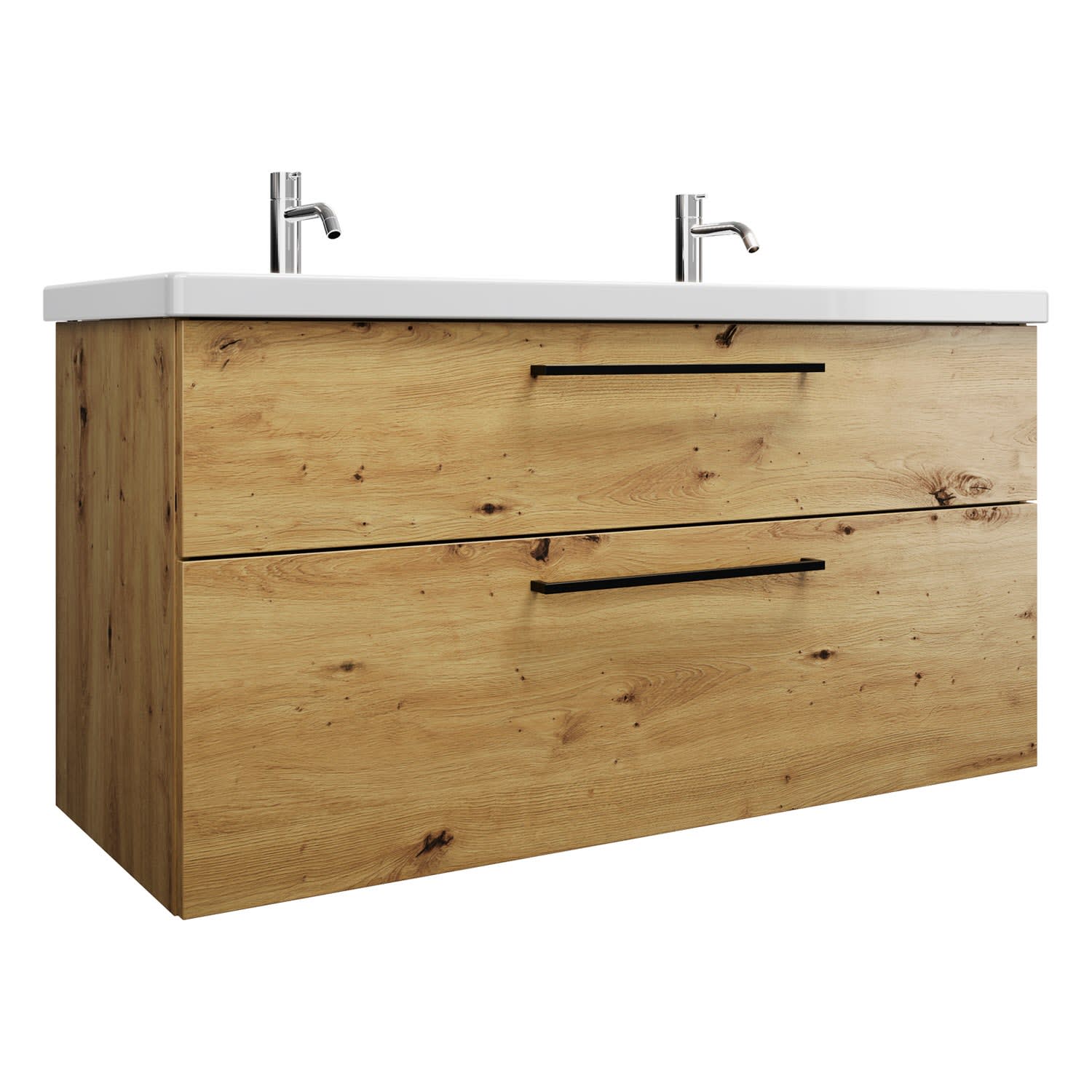 burgbad Eqio Waschtischkombination mit Keramik-Doppelwaschtisch, 123 cm, mit Stangengriff G0234