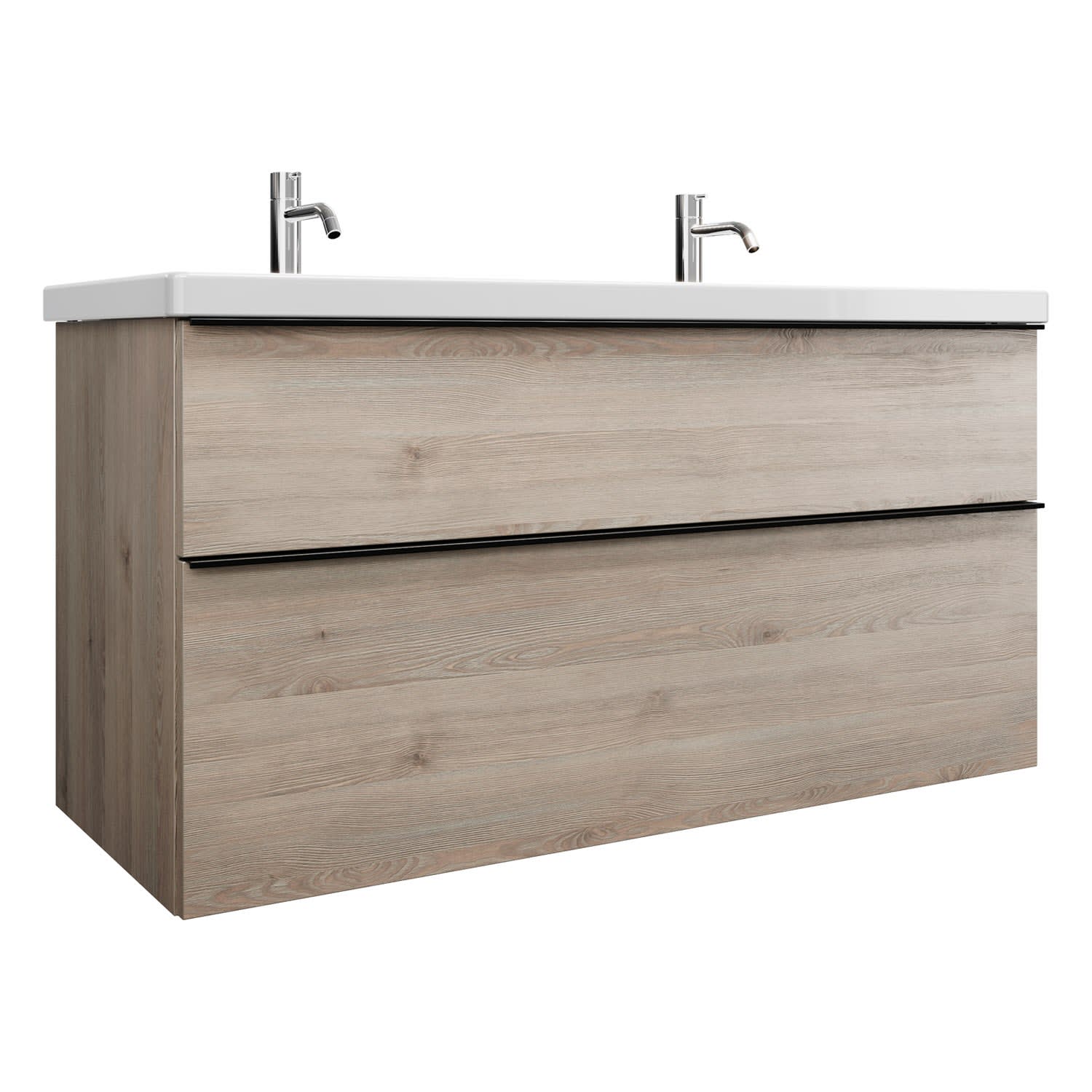 burgbad Eqio Waschtischkombination mit Keramik-Doppelwaschtisch, 123 cm, mit Griffleiste G0252