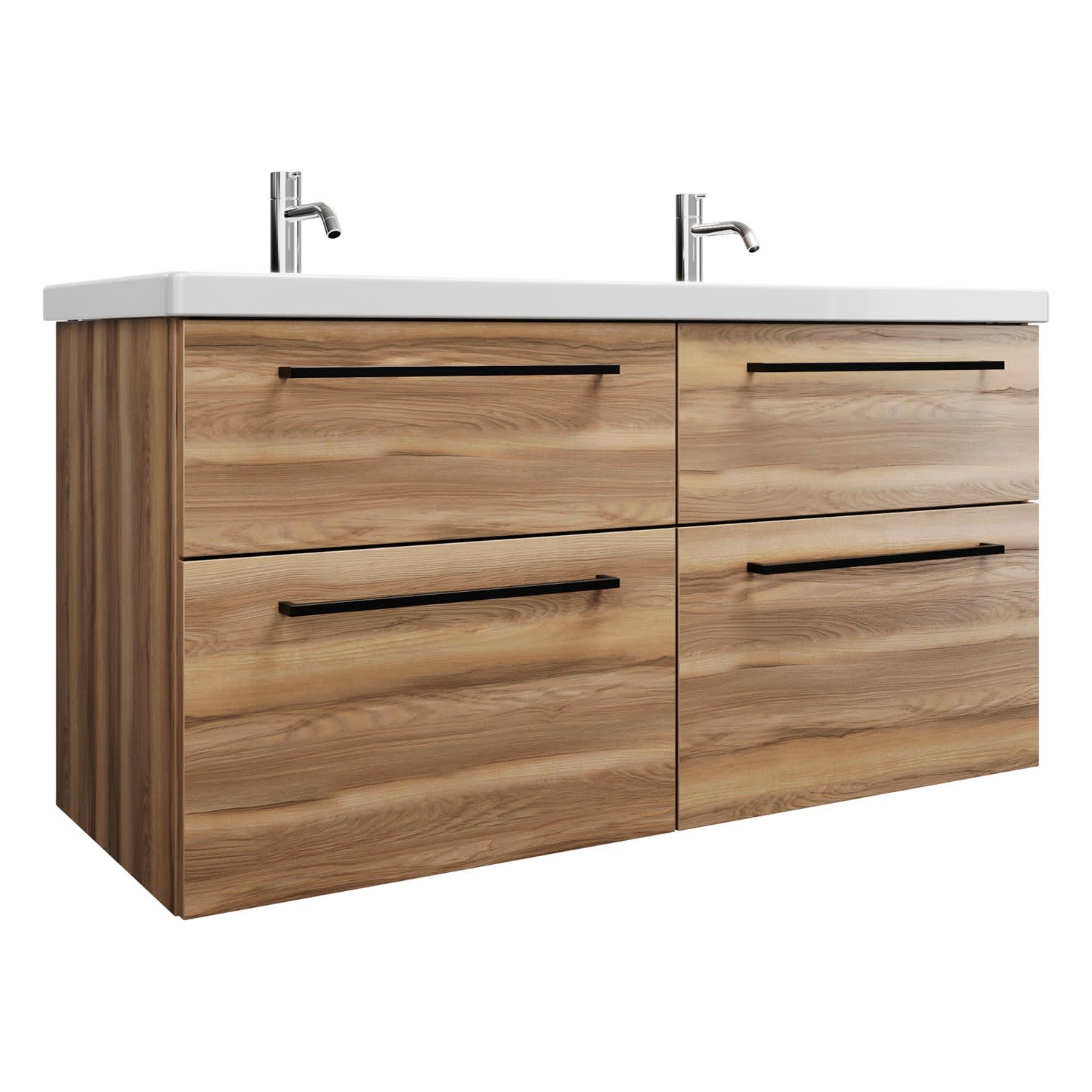 burgbad Eqio Waschtischkombination mit Keramik-Doppelwaschtisch, 123 cm, mit Stangengriff G0234