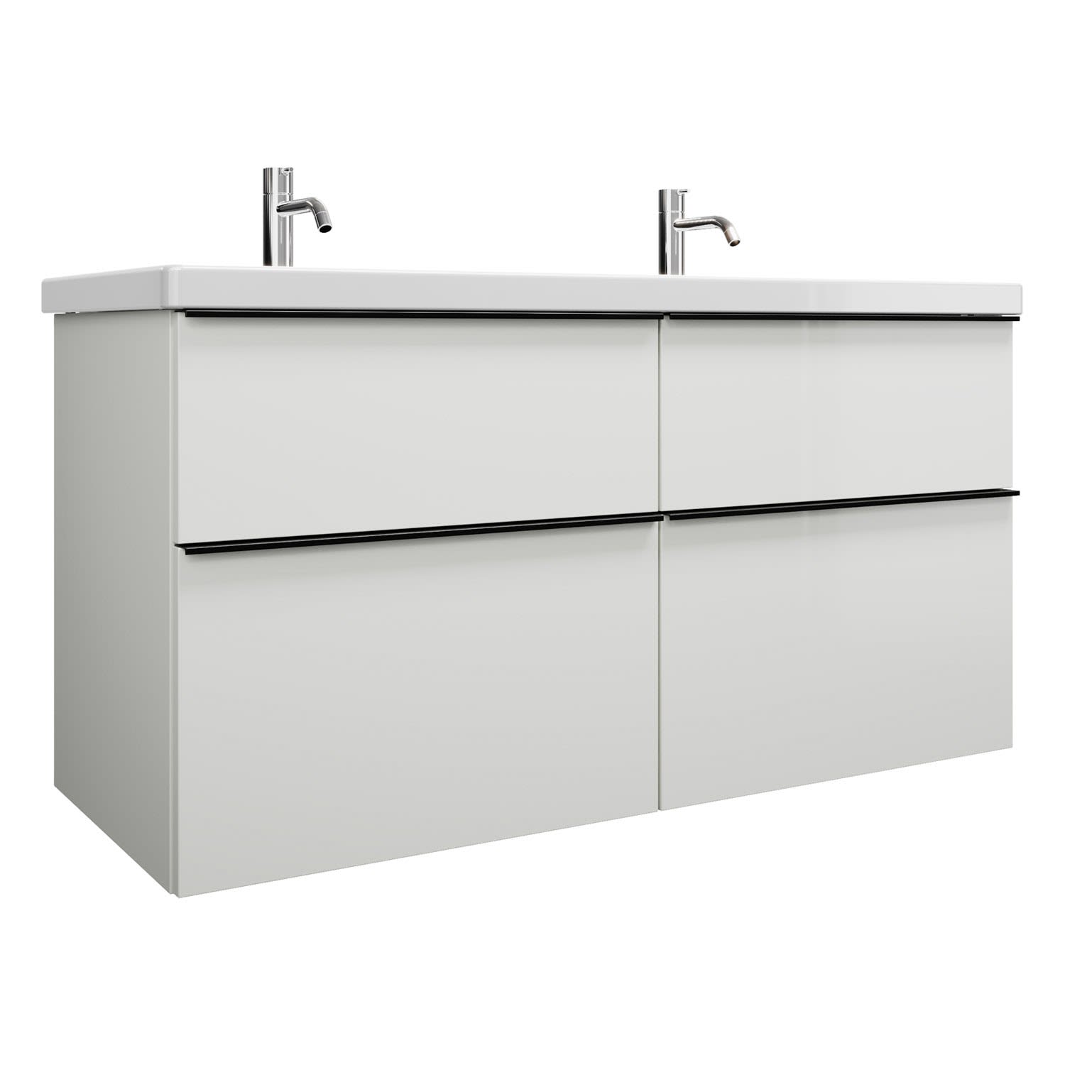 burgbad Eqio Waschtischkombination mit Keramik-Doppelwaschtisch, 123 cm, mit Griffleiste G0252