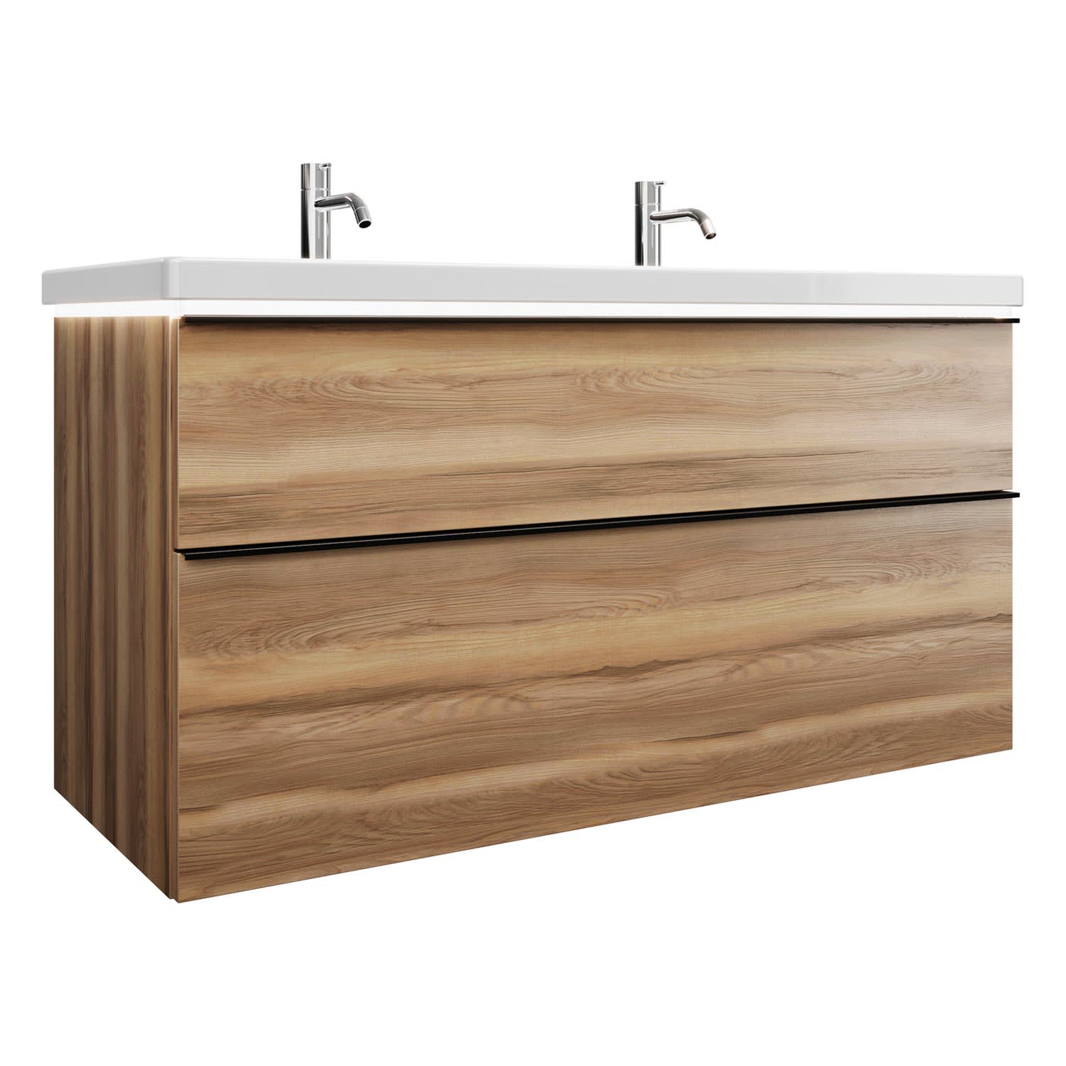 burgbad Eqio Waschtischkombination mit Keramik-Waschtisch mit LED-Beleuchtung, 123 cm, mit Griffleiste G0252