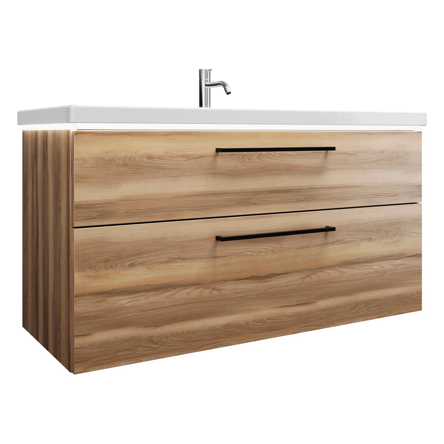 burgbad Eqio Waschtischkombination mit Keramik-Doppelwaschtisch mit LED-Beleuchtung, 123 cm, mit Stangengriff G0234