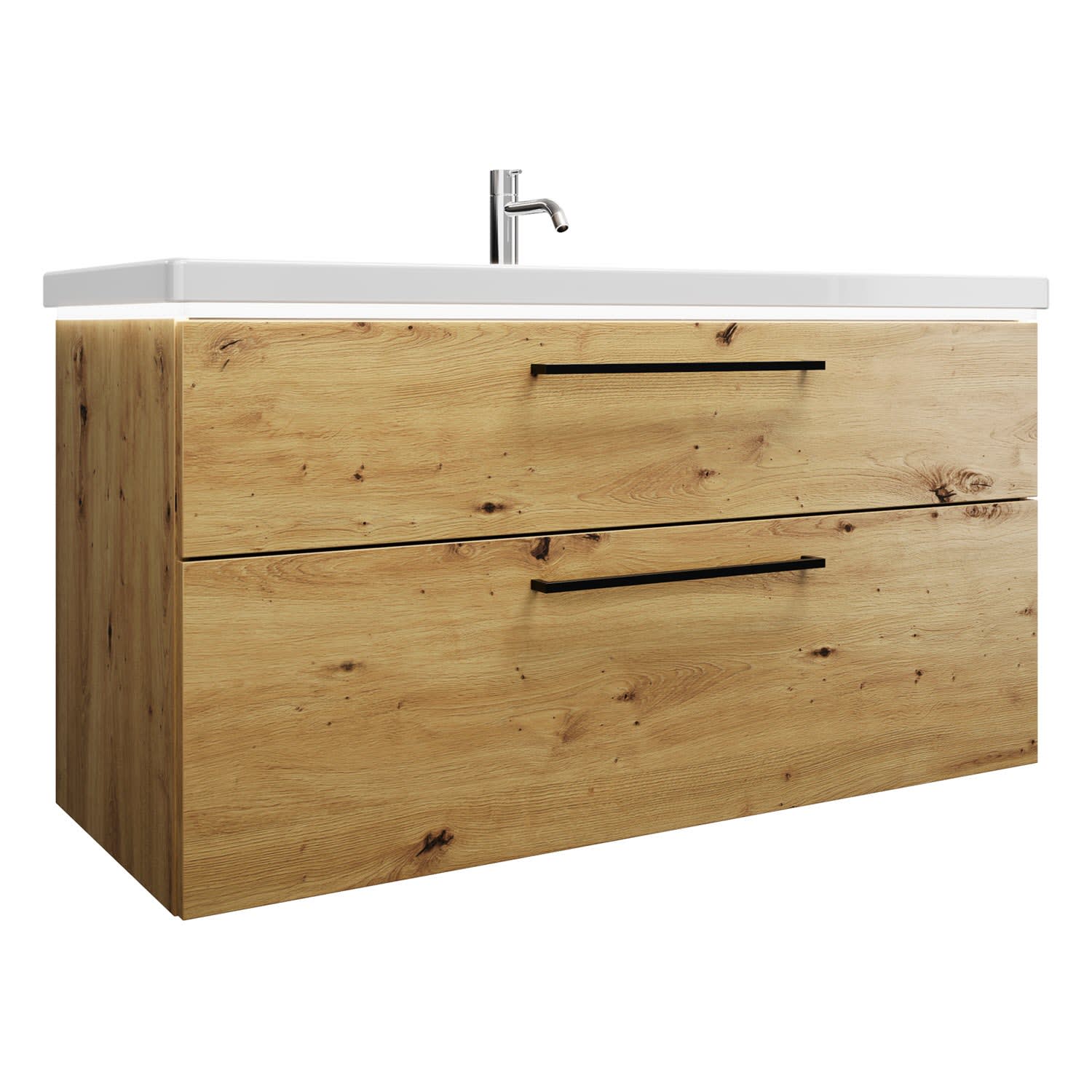 burgbad Eqio Waschtischkombination mit Keramik-Doppelwaschtisch mit LED-Beleuchtung, 123 cm, mit Stangengriff G0234