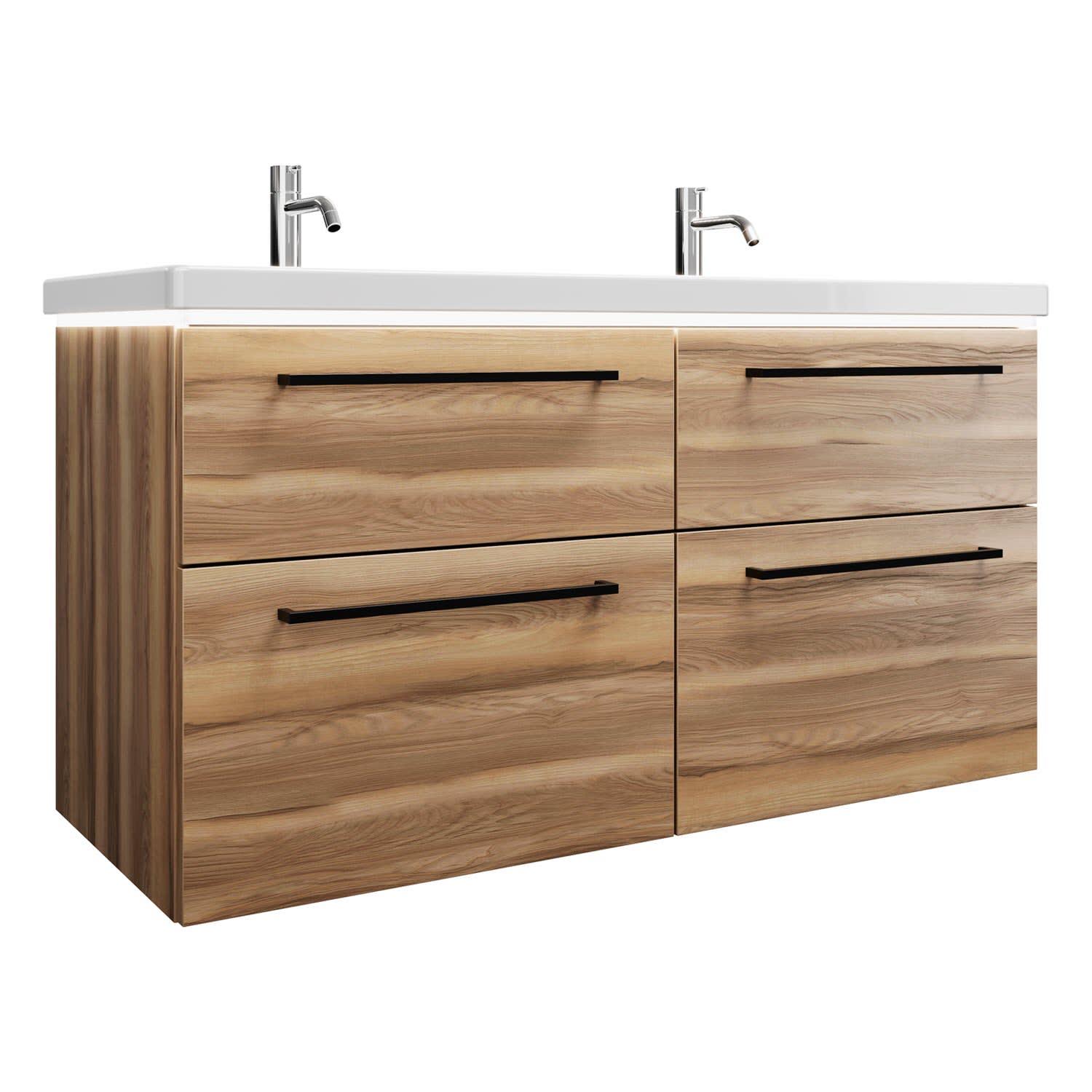 burgbad Eqio Waschtischkombination mit Keramik-Doppelwaschtisch mit LED-Beleuchtung, 123 cm, mit Stangengriff G0234