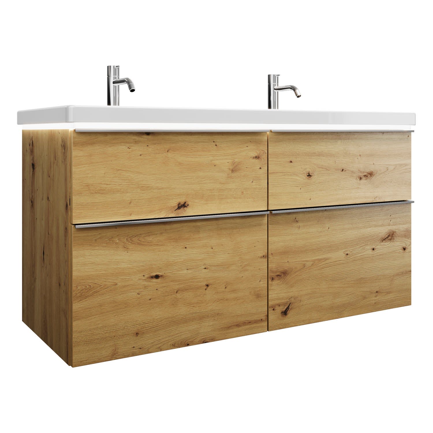 burgbad Eqio Waschtischkombination mit Keramik-Doppelwaschtisch mit LED-Beleuchtung, 123 cm, mit Griffleiste G0251