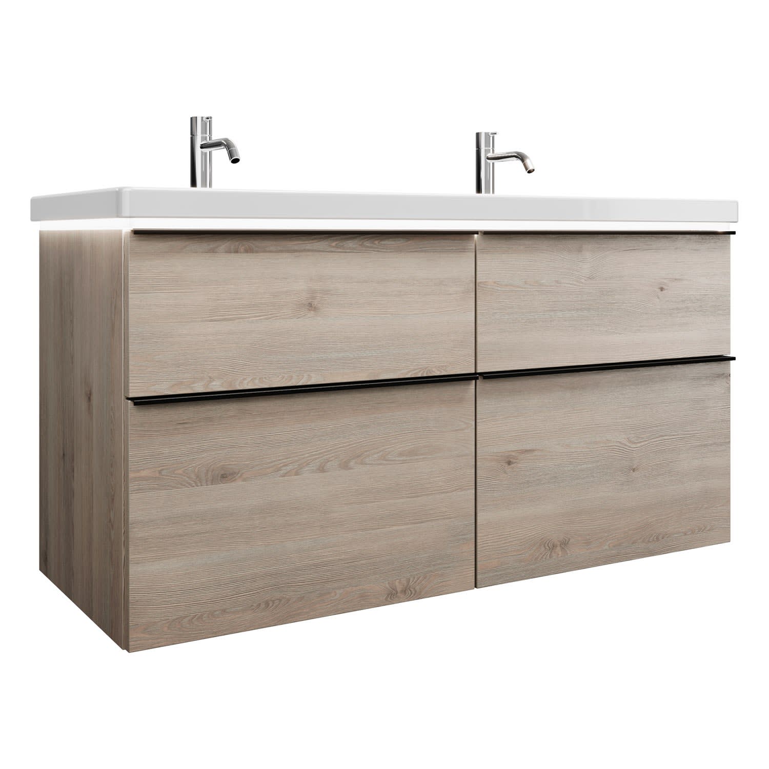 burgbad Eqio Waschtischkombination mit Keramik-Doppelwaschtisch mit LED-Beleuchtung, 123 cm, mit Griffleiste G0252