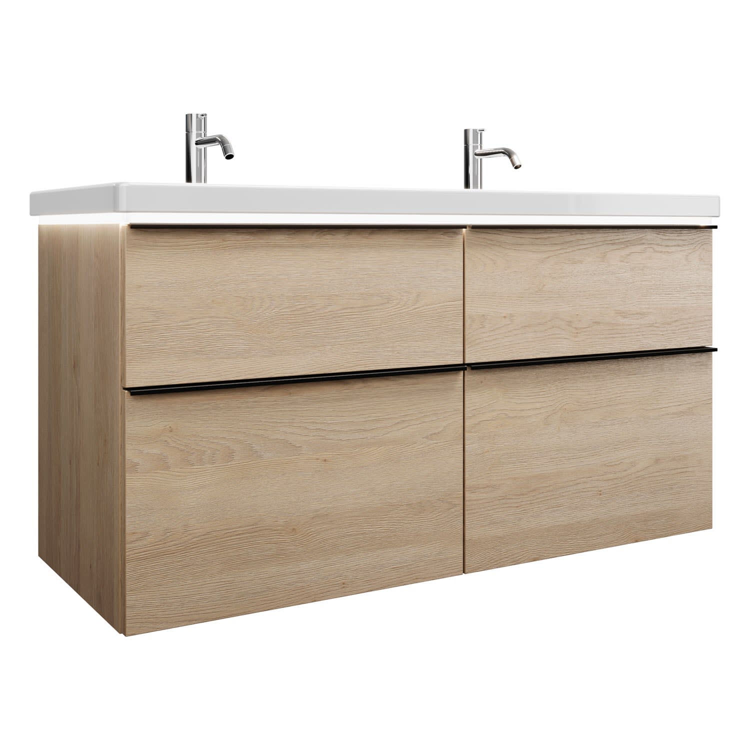 burgbad Eqio Waschtischkombination mit Keramik-Doppelwaschtisch mit LED-Beleuchtung, 123 cm, mit Griffleiste G0252